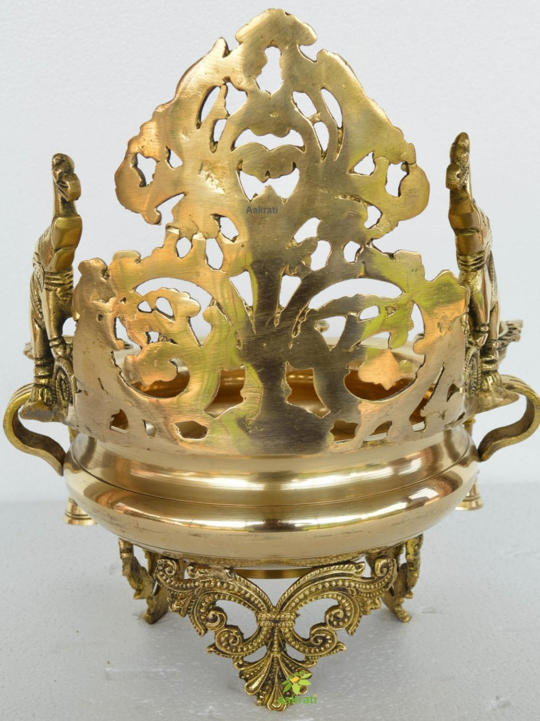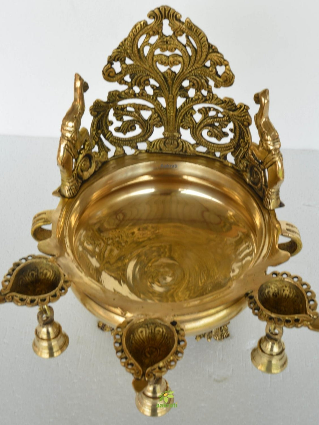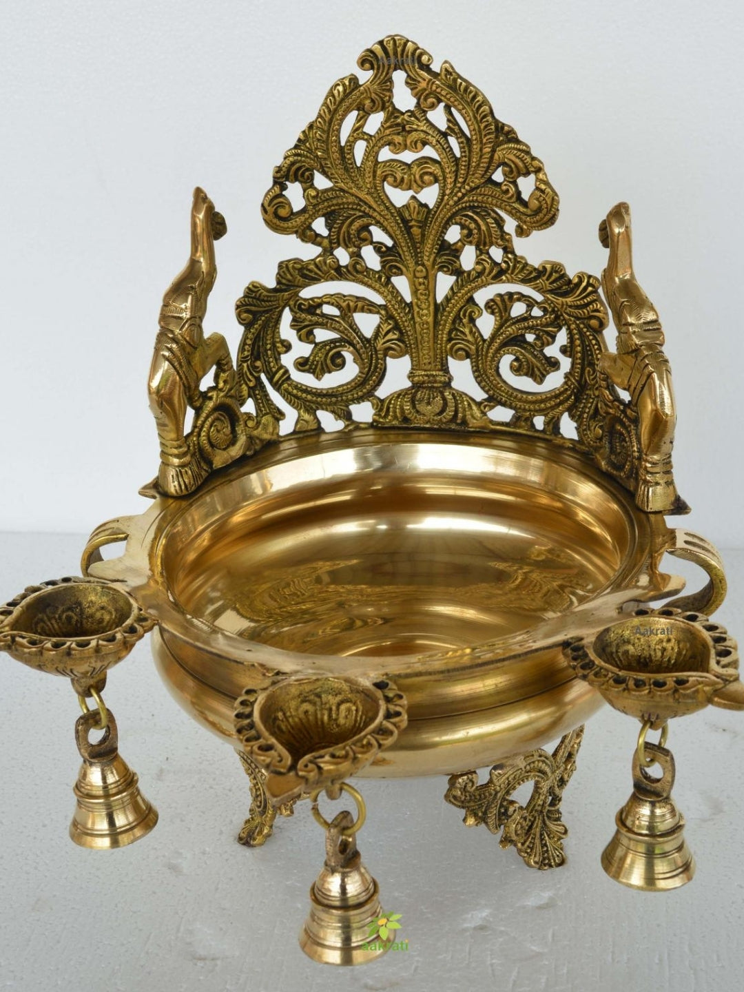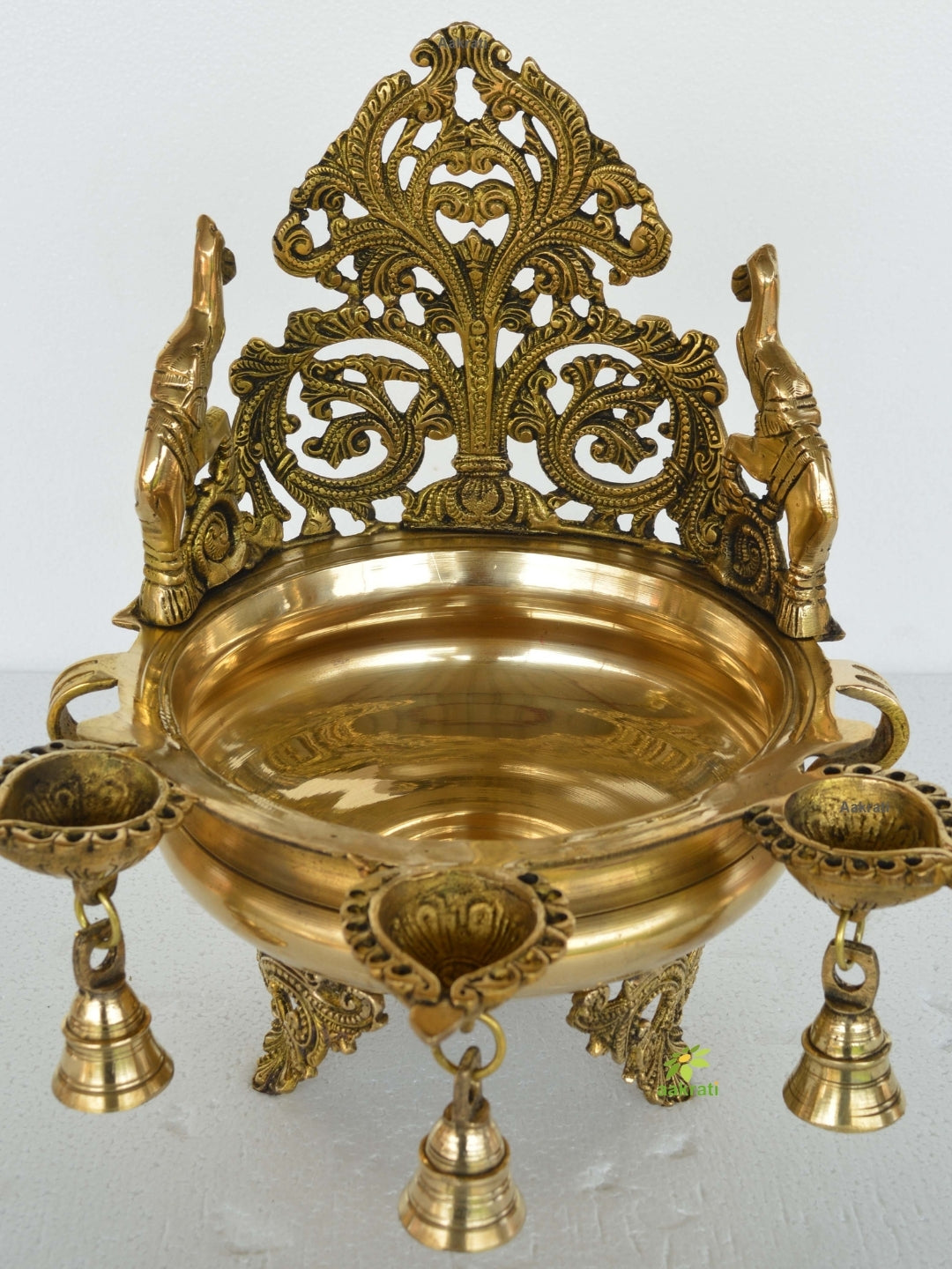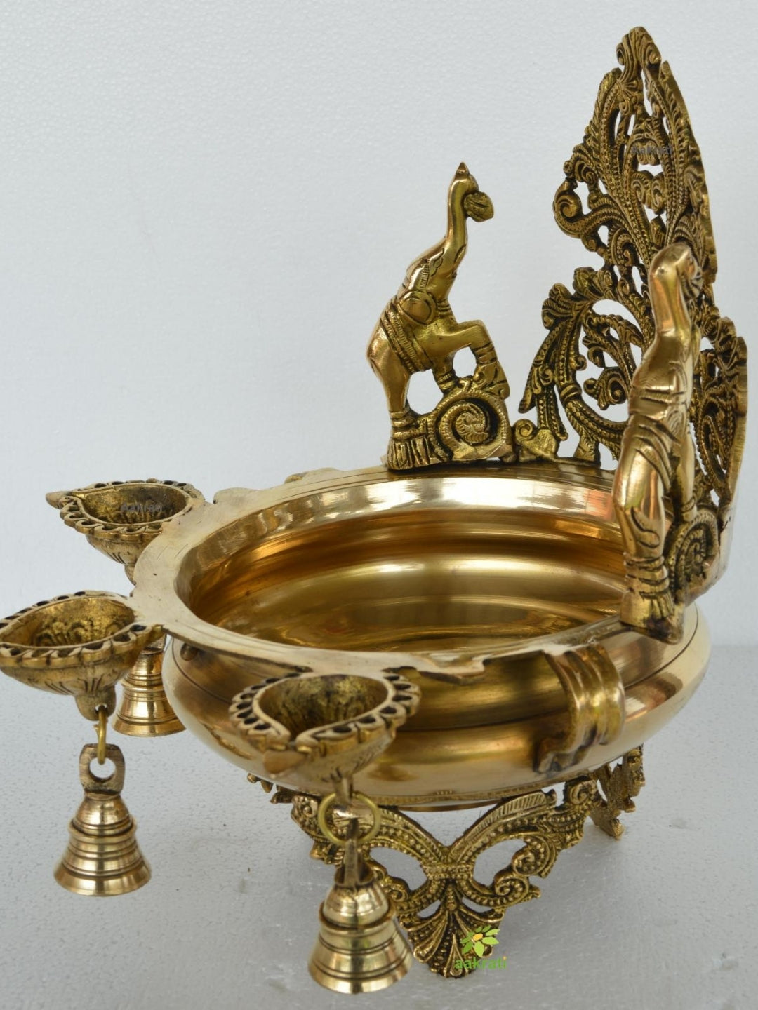 Aakrati Urli Pot for Home office decoration made in Hand Carved brass metal with bells