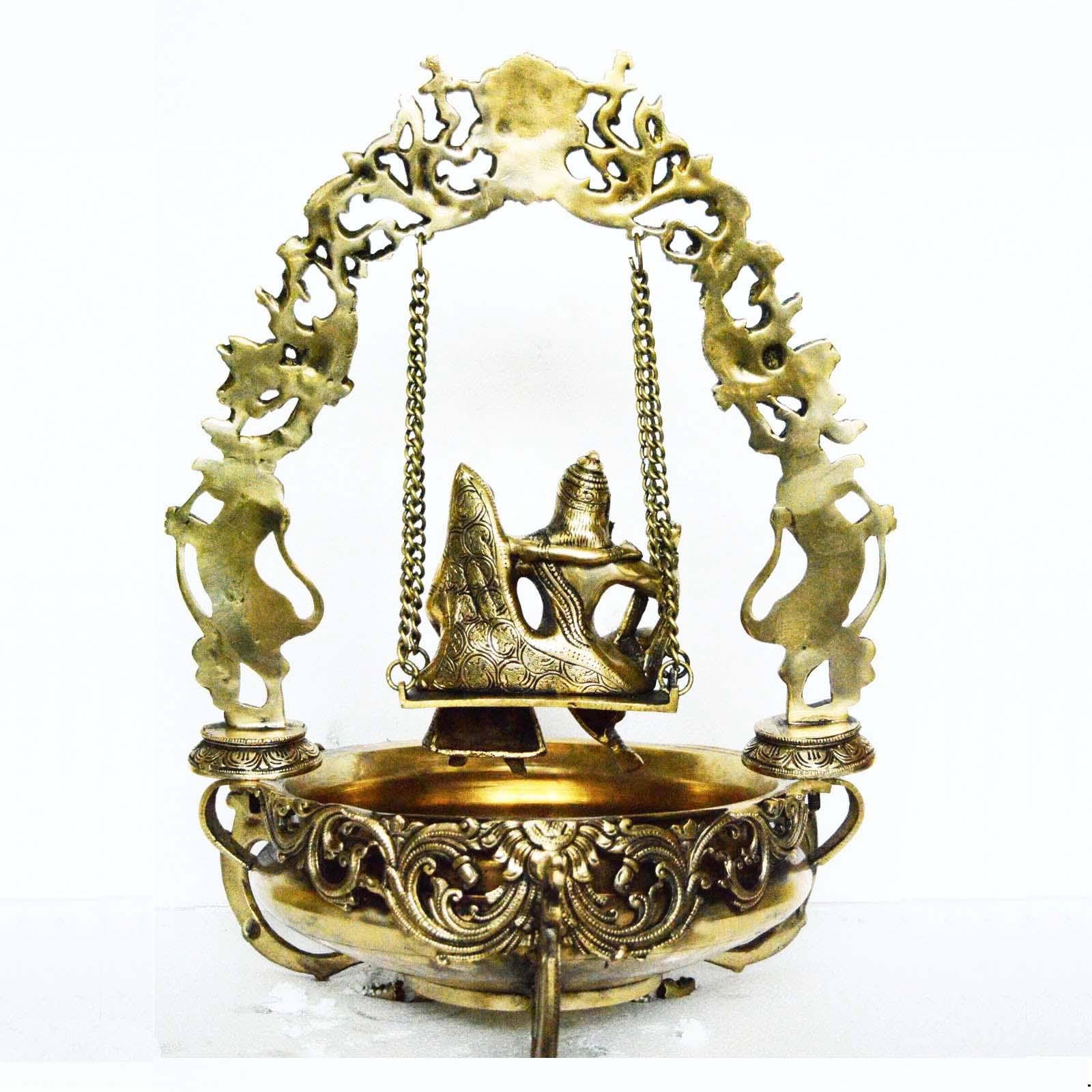 Brass Metal Radha Krishna on swing figure Home/Event Decor Urli