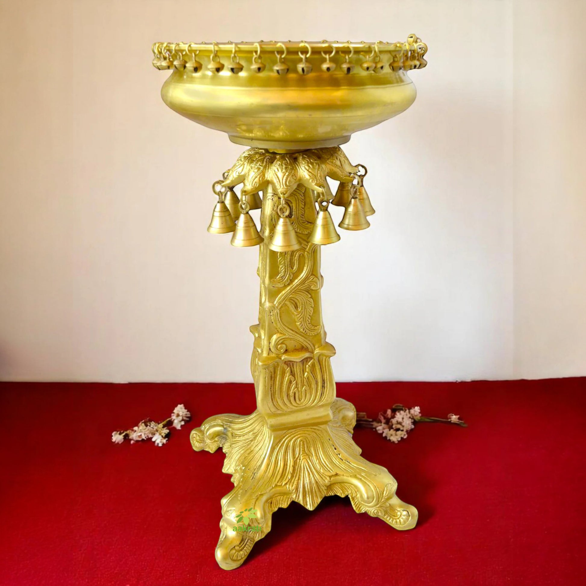Brass Urli stand with small ghungroos bells antiuqe finish