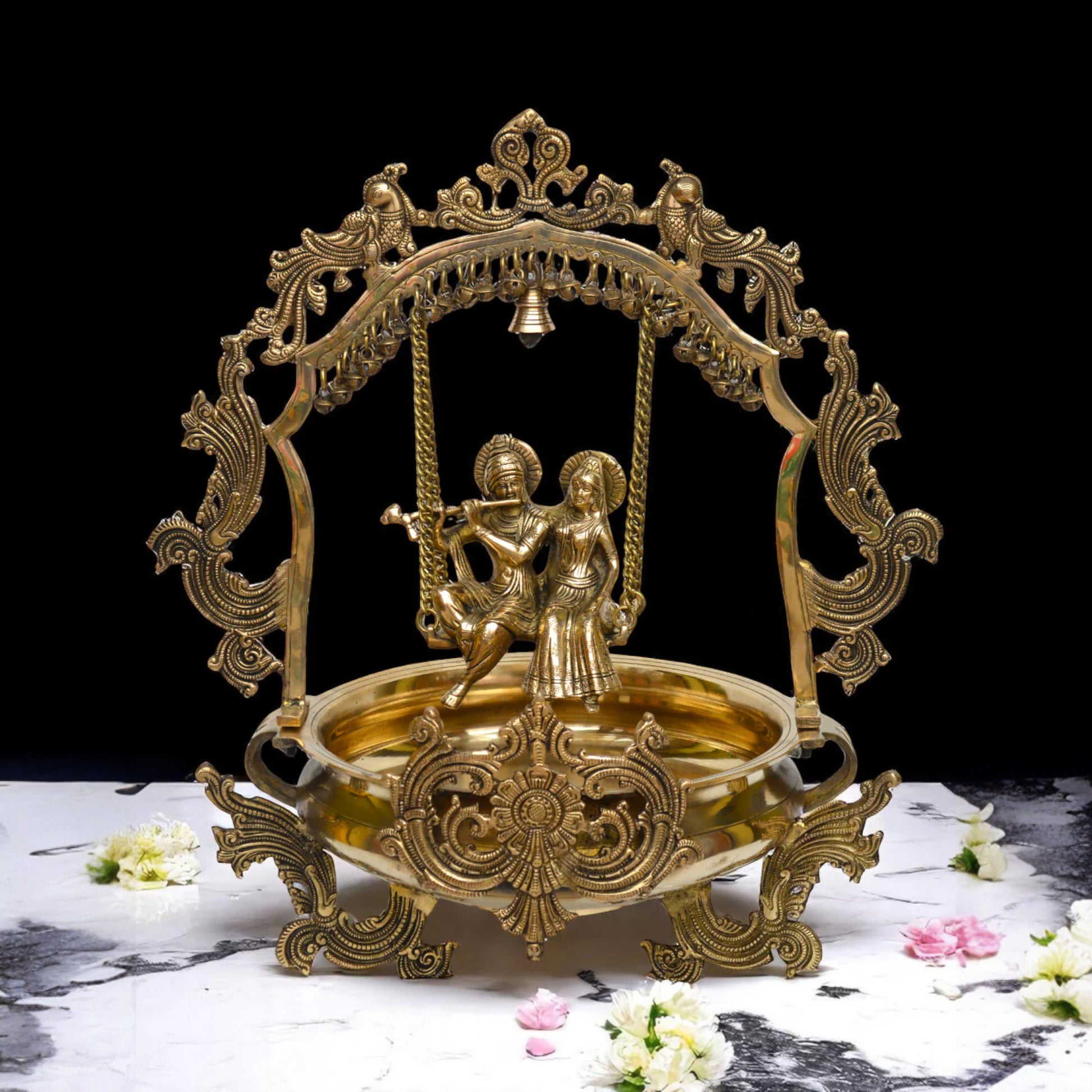 Radha krishna Swing brass urli, Radha krishna Urli, Traditional Bowl, Brass urli, Ethnic design urli,indian brass urli