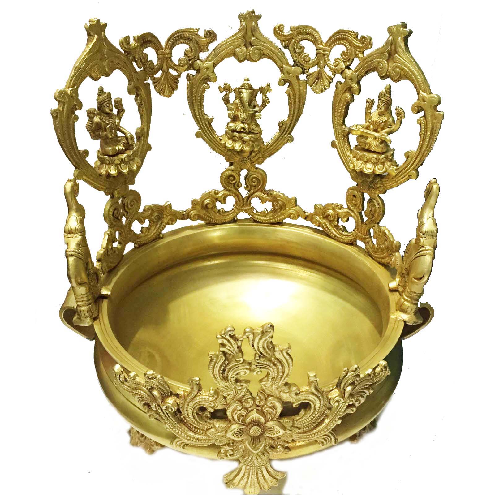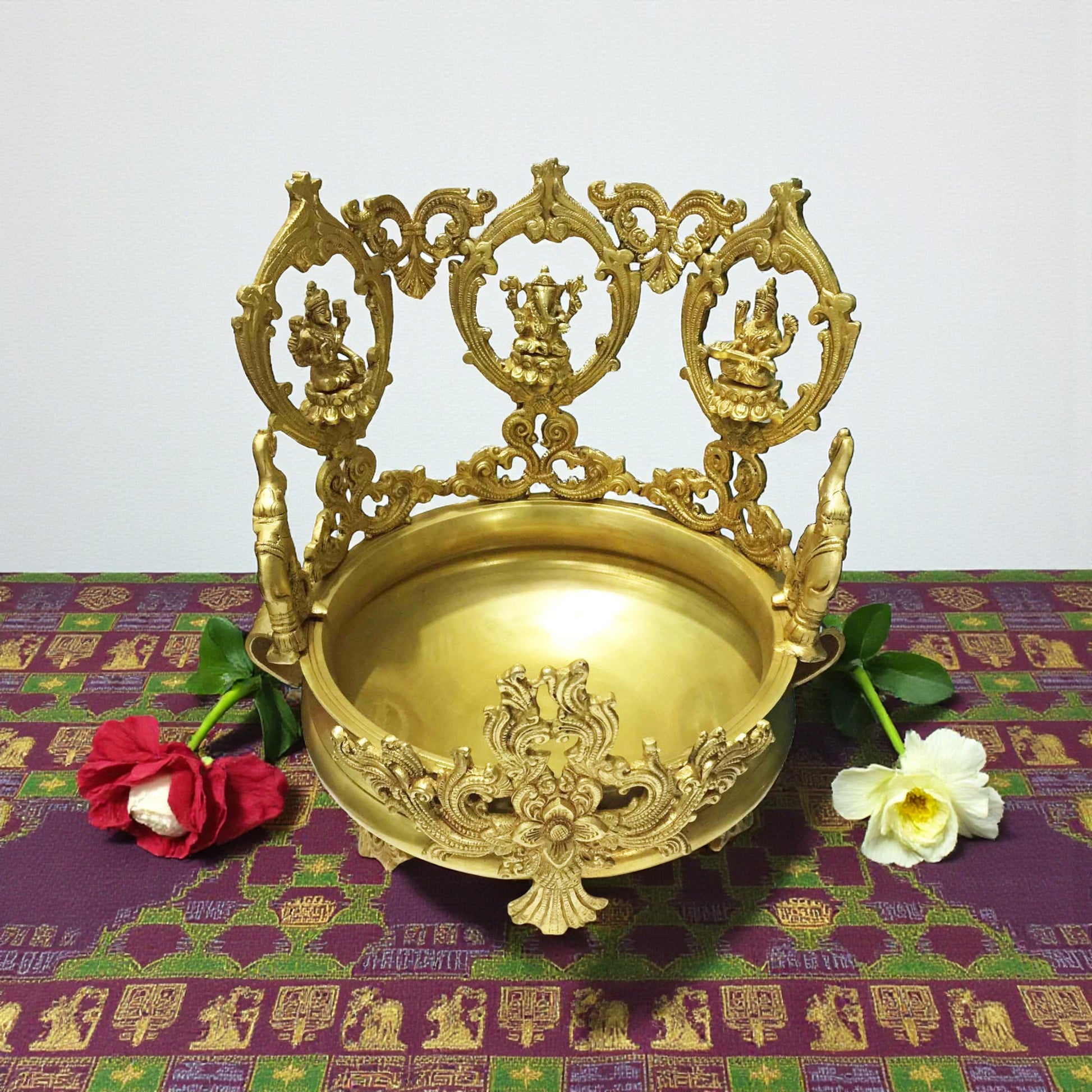 Religious Idol Ganesha Lakshmi Saraswati figure Brass Made Hand Carved Urli