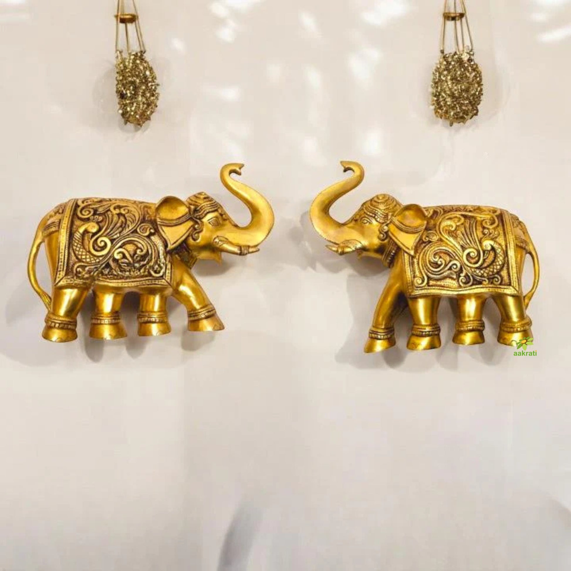 "Handcrafted Brass Elephant Wall Decor | "Premium Brass Elephant Wall Hanging | Wall hanging (Yellow 9 inch)