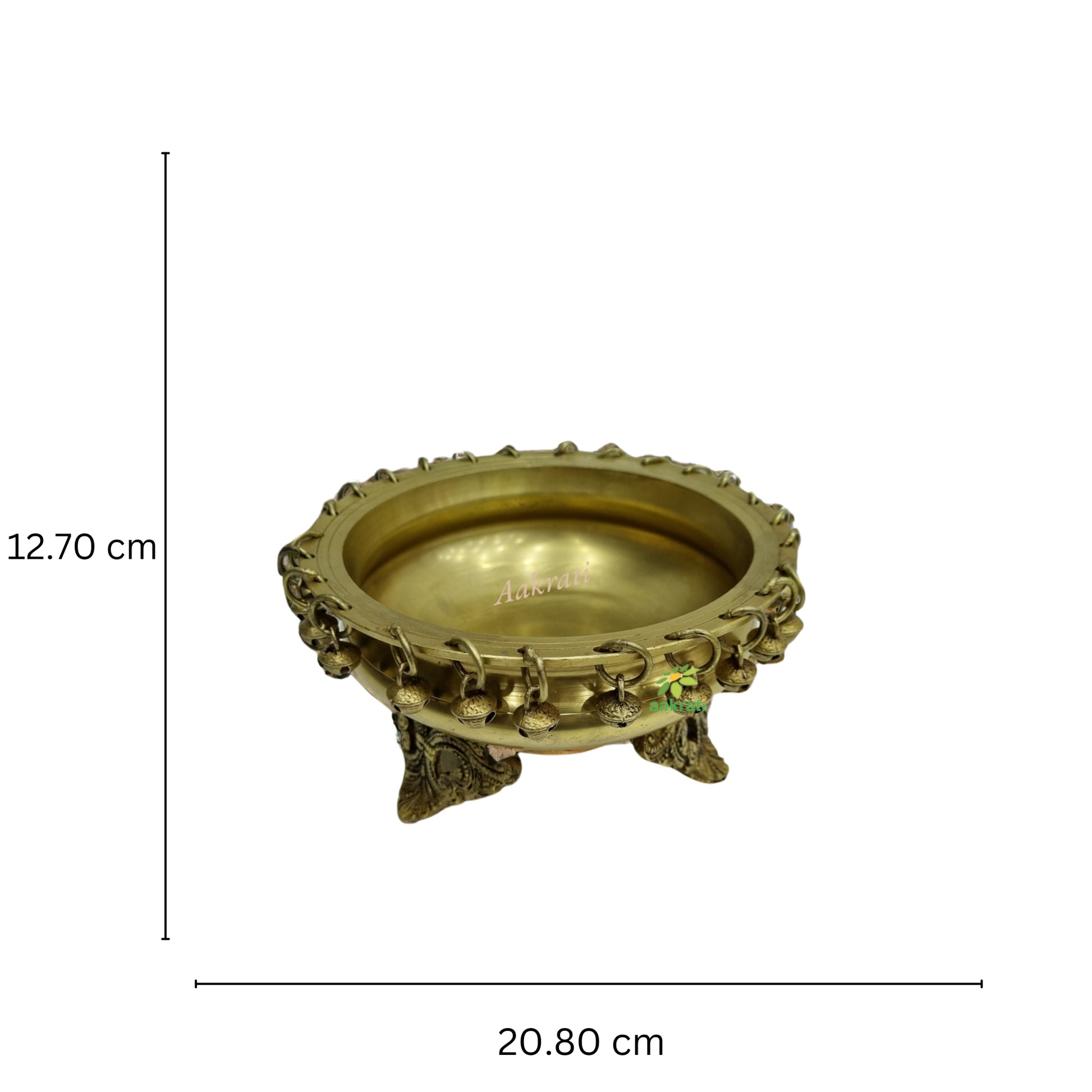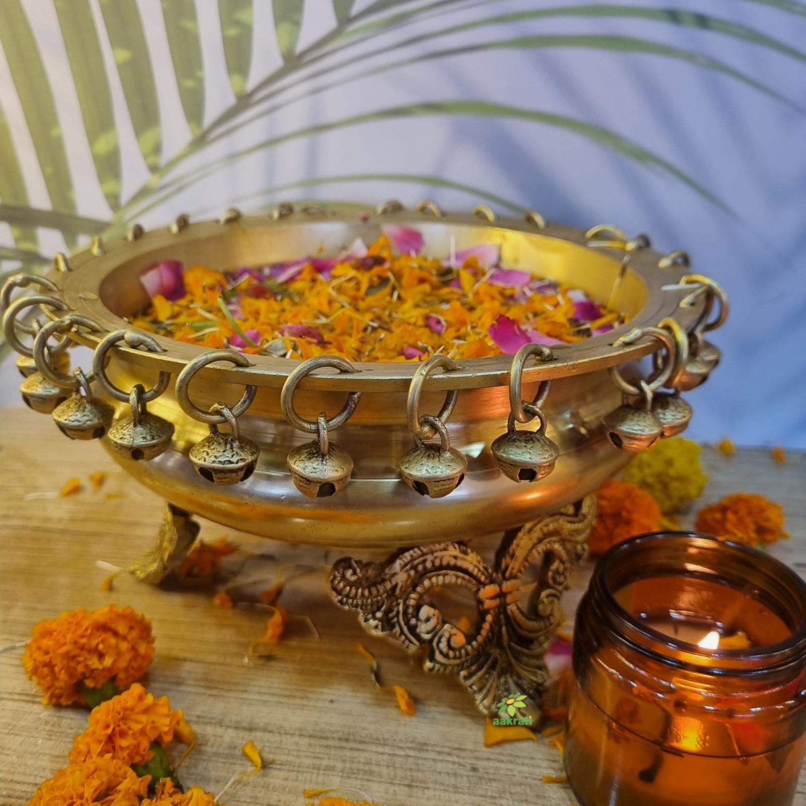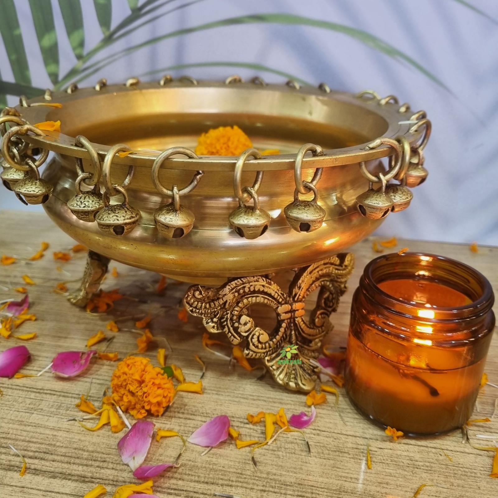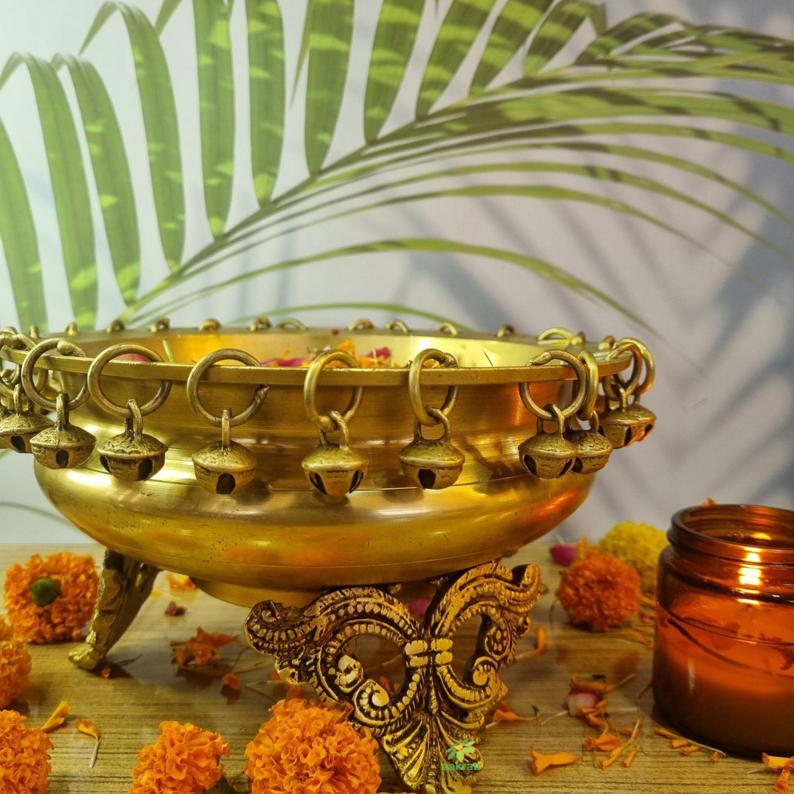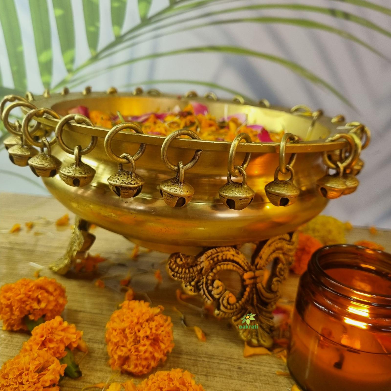Ethnic Brass Decor Urli Showpiece with Bells Urli Decor, Decorative Urli for Corner Tables, Ethnic Indian Decor urli
