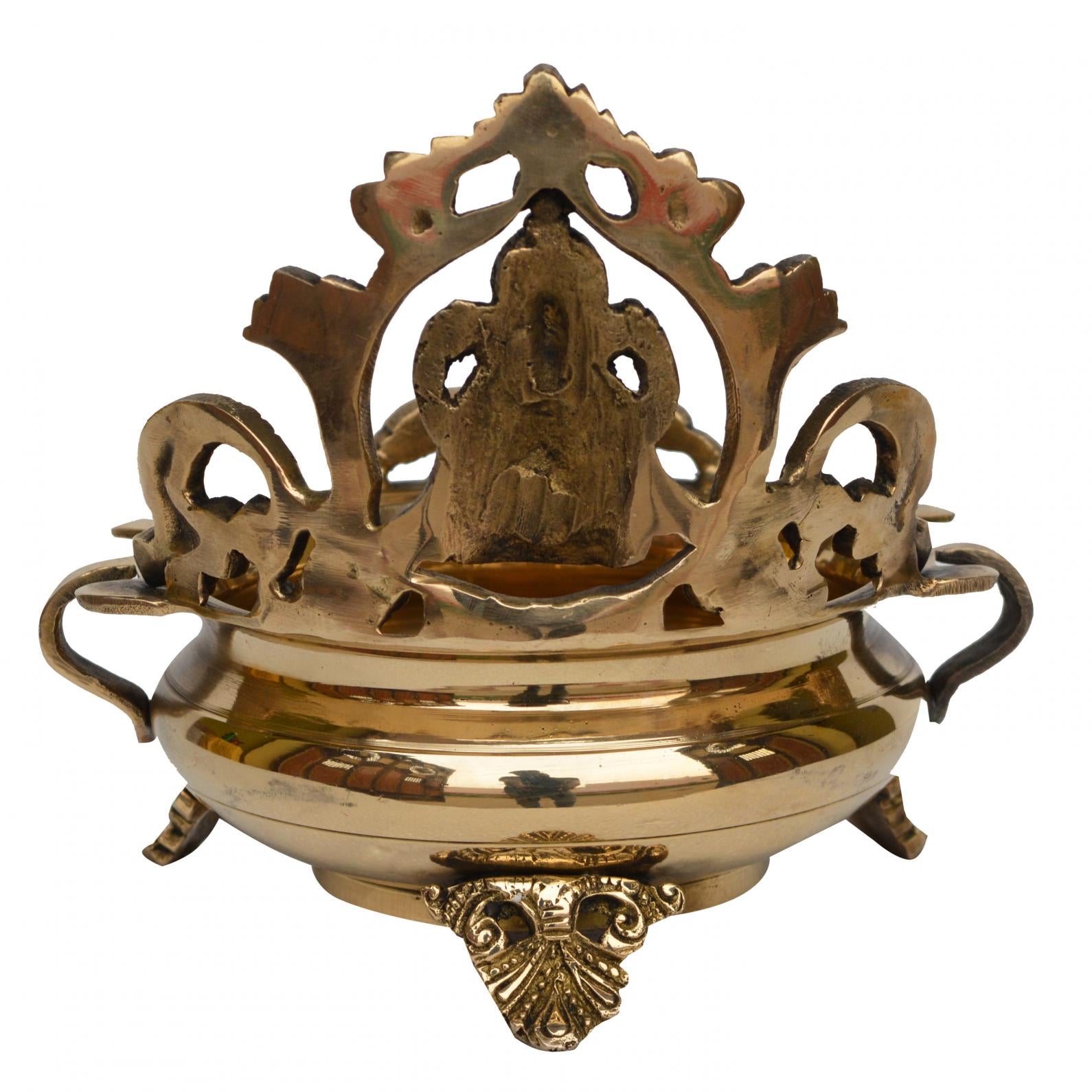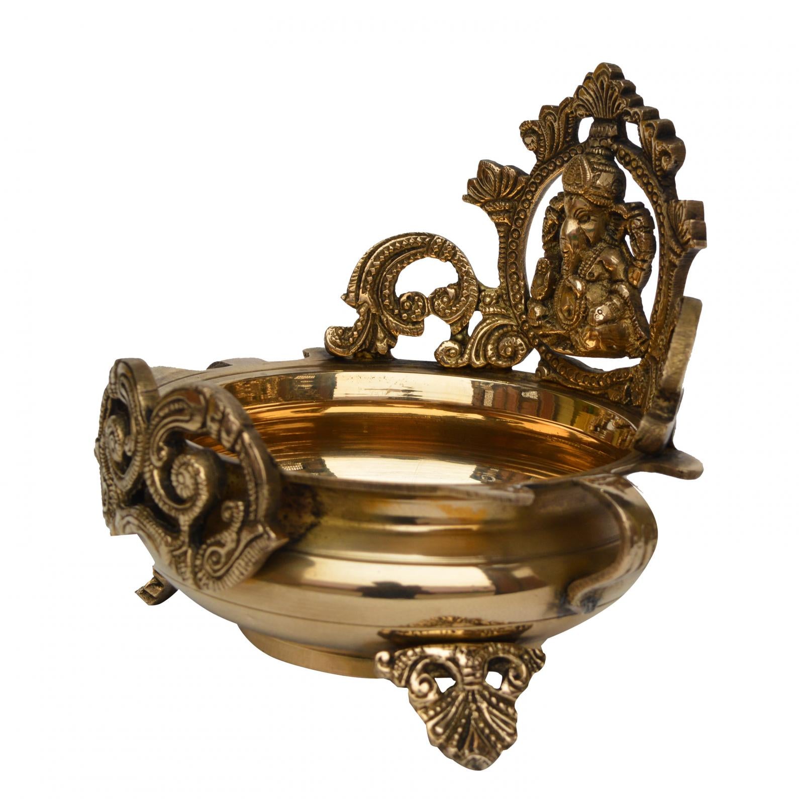 Ethnic Carved Urli with Ganesha Statue, 7 Inches Brass Decor Bowl, Urli Decor, Decorative Urli for Corner Tables