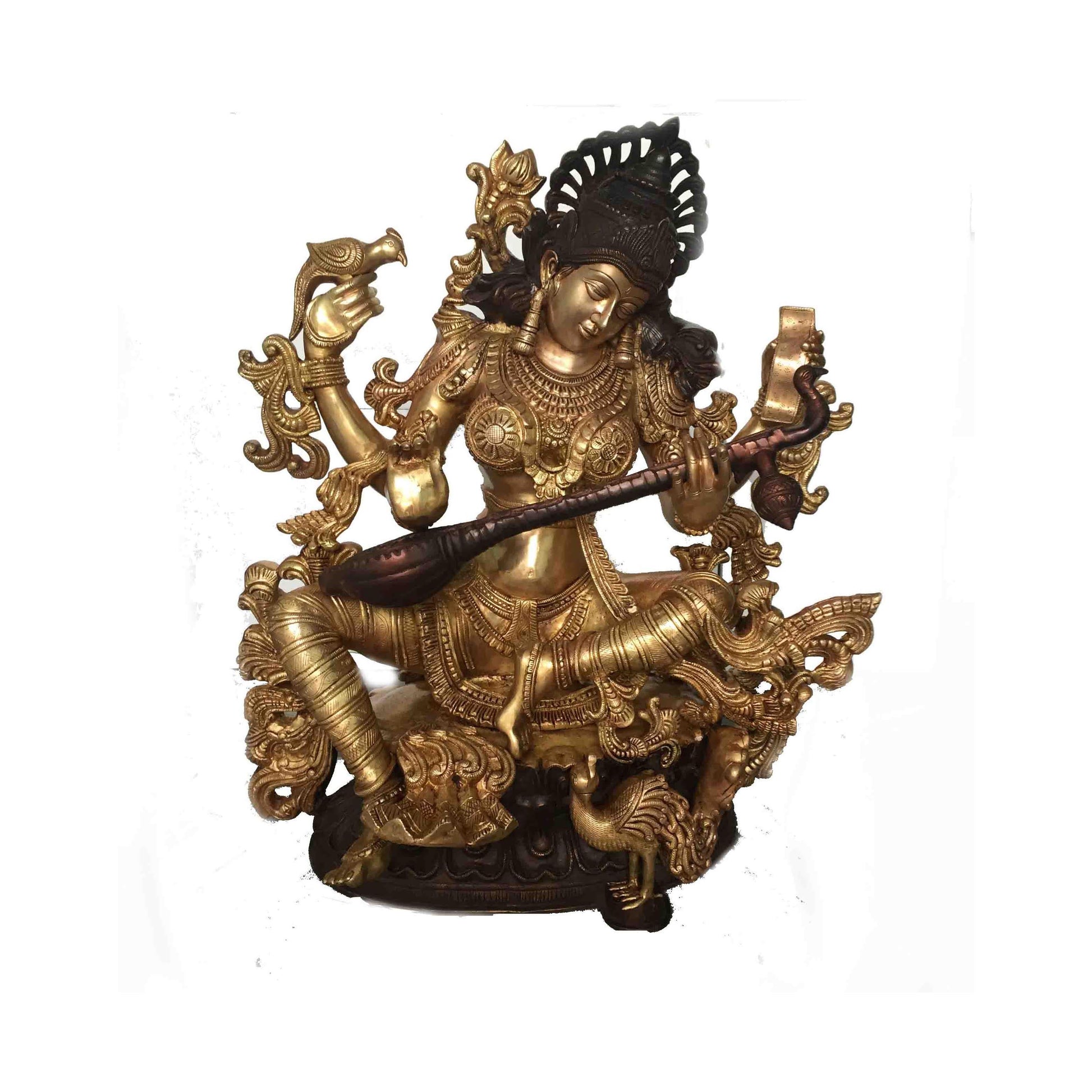 Goddess Saraswati Brass Metal Statue by Aakrati