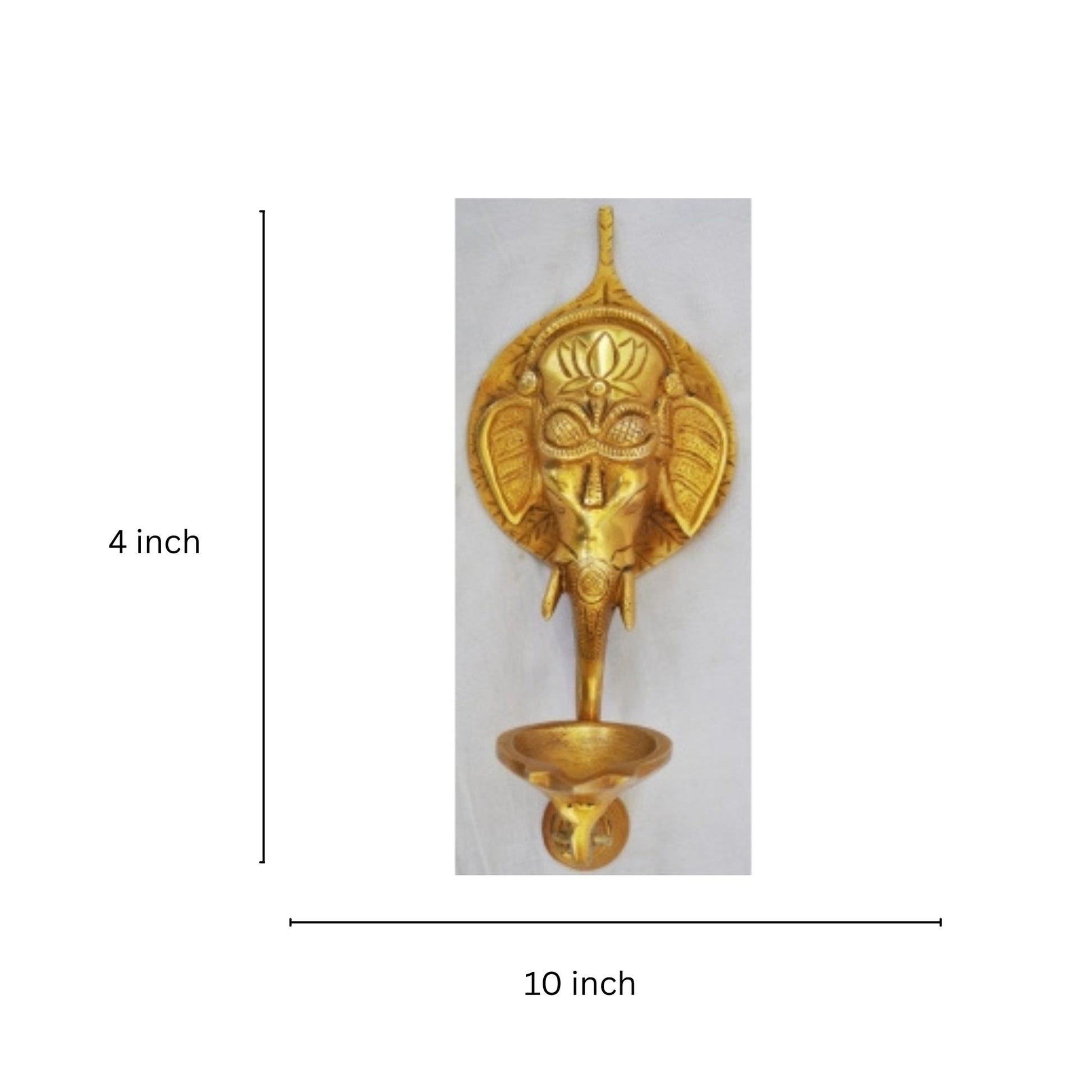 Handcrafted Brass Ganesha Wall Hanging Oil Lamp | Traditional Spiritual Decor for Home Temple | Brass Oil Lamp ( Yellow, 10 inch)