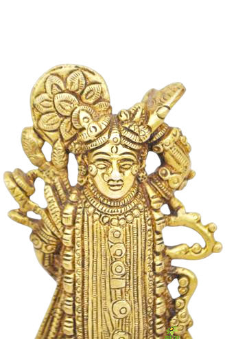 Handcrafted Brass Shri Nath Murti | Traditional Religious Idol for Home Temple | Brass Shri Nath Ji Idol ( Yellow, 5.5 inch)