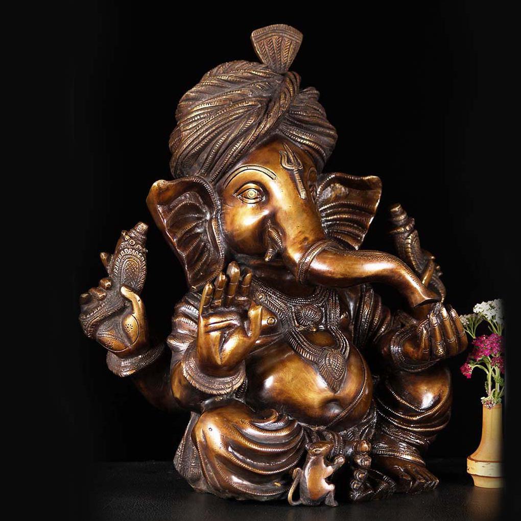 Metal Sculpture of Lord Ganesha idol brass metal antique finish Statue