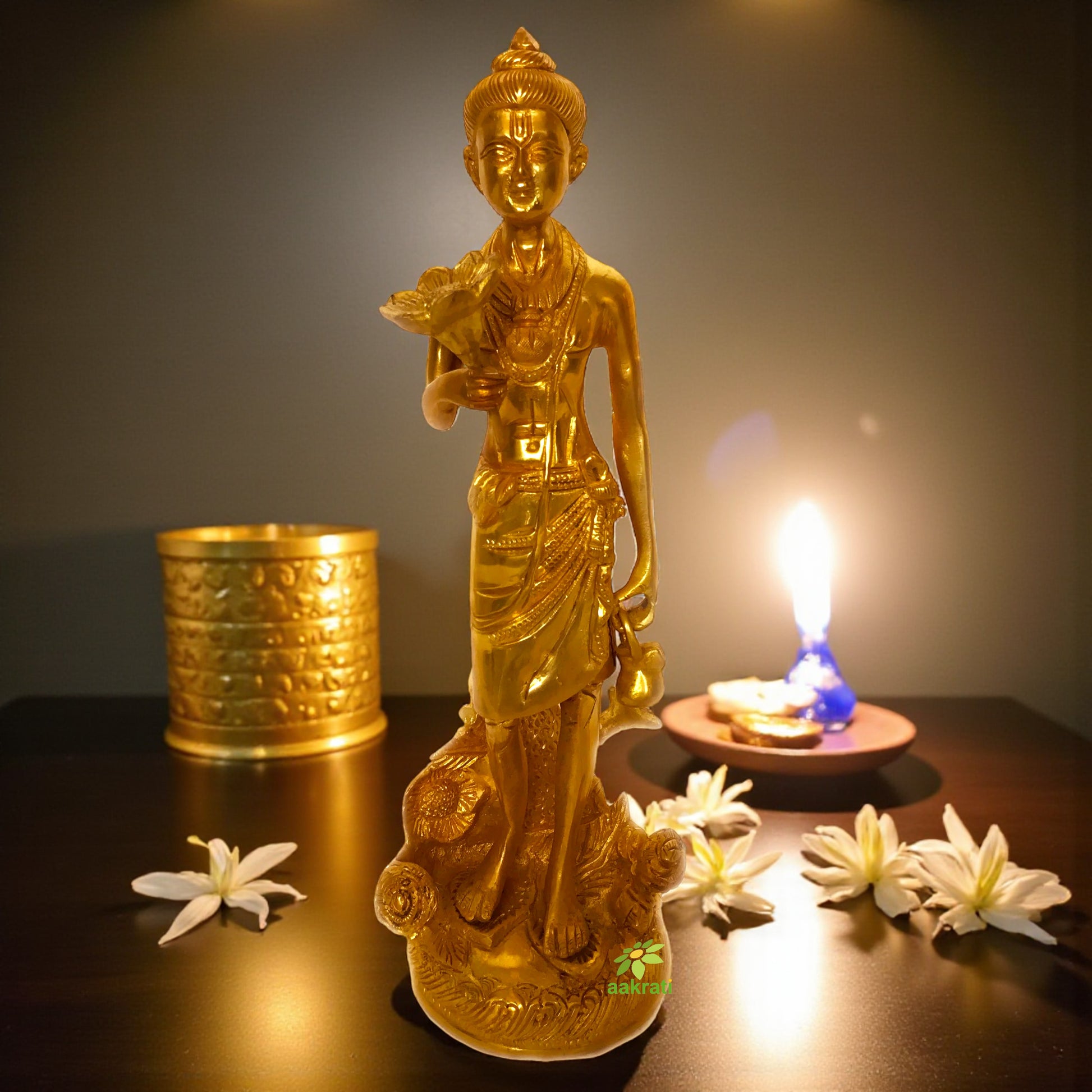 - Highlight the use of high-quality brass that ensures durability and longevity. Emphasize that it doesn't tarnish easily and retains its shine for a long time, making it suitable for religious rituals and decorations.