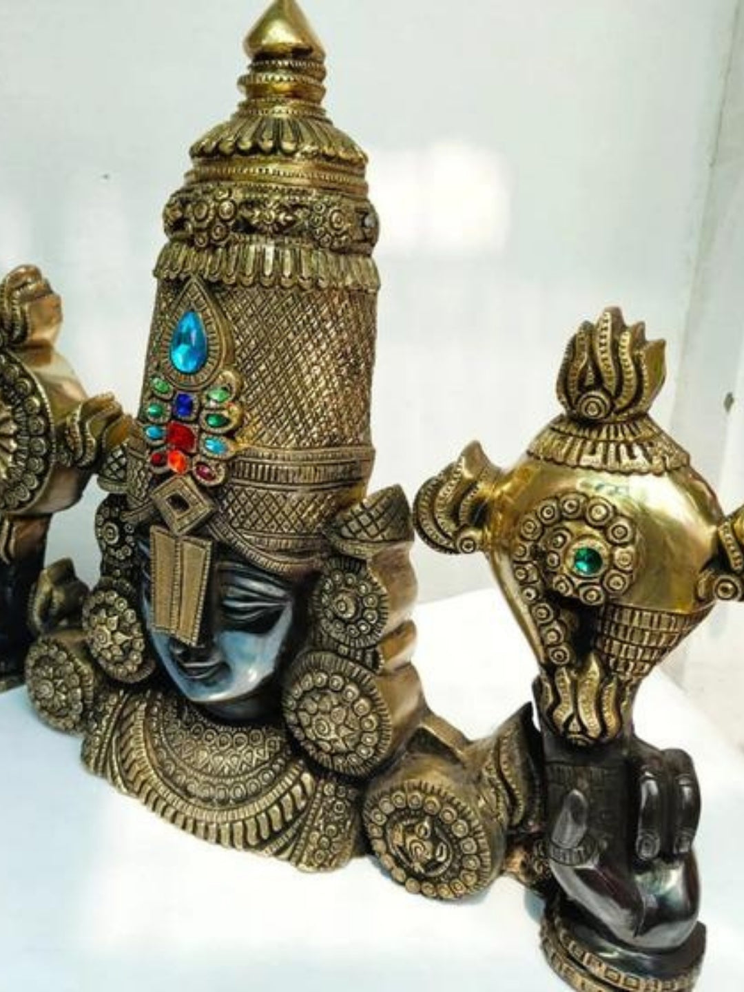Tirupathi Balaji Brass 38cm Venkateshwara statue/wall Hanging Decor , Shank Chakra wall Hanging , Brass balaji Face wall Hanging , Vishnu