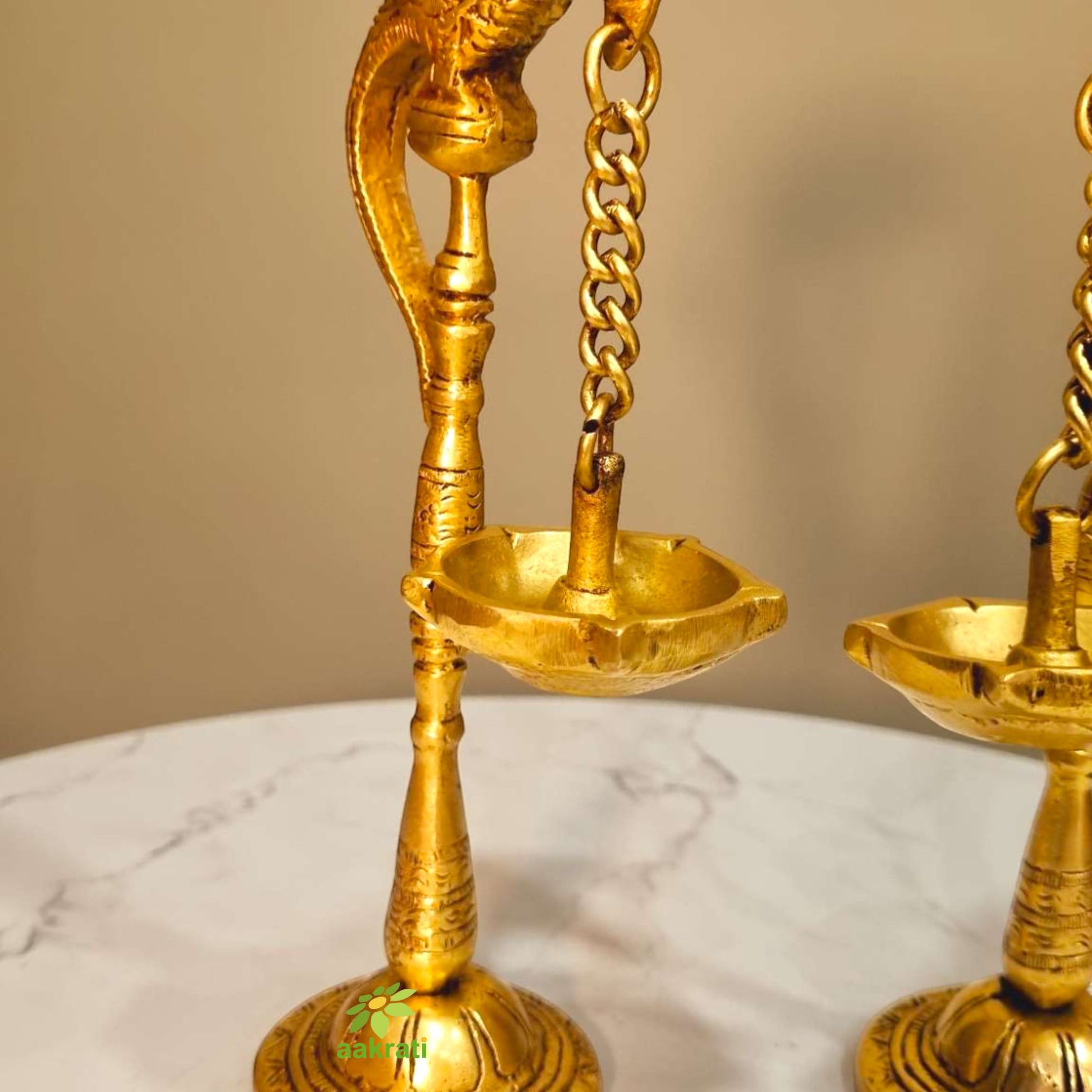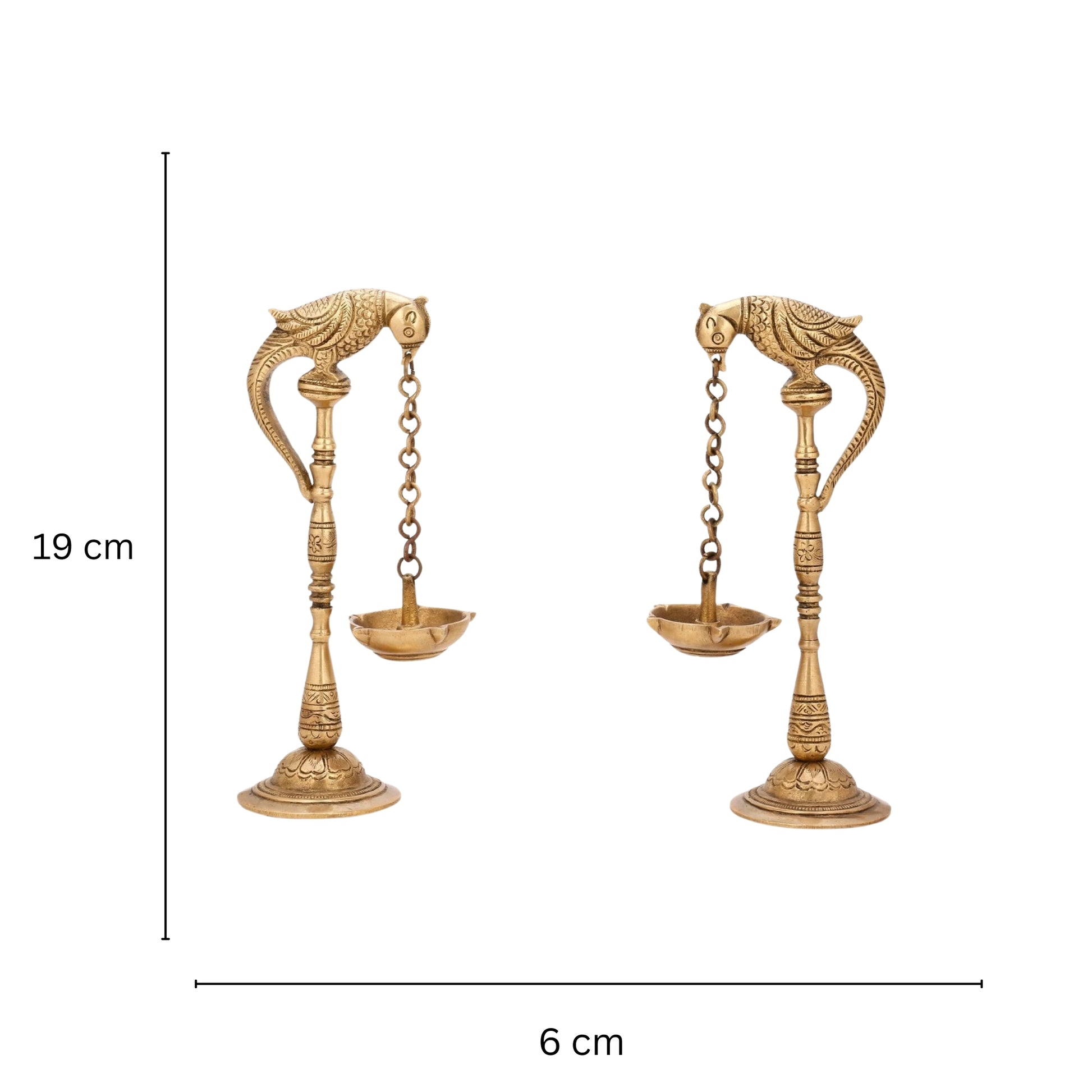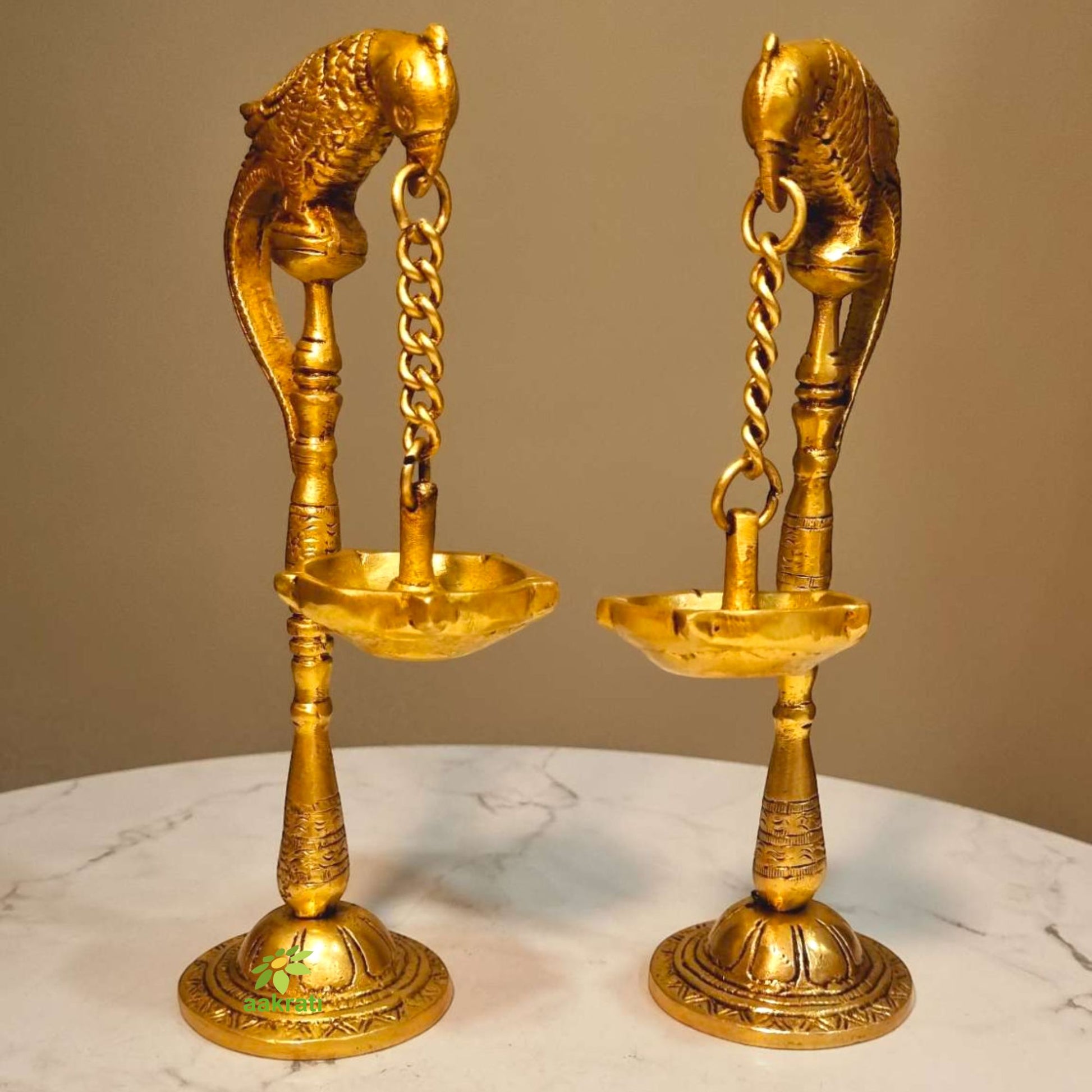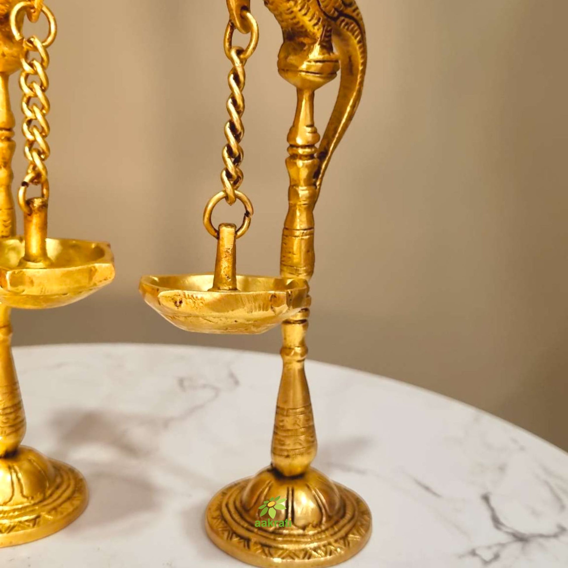 Aakrati Pair of Bird Diya Oil Lamp Stand Brass Hindu Religious Puja Artical Also use for Fengshui Gifts and Home Temple