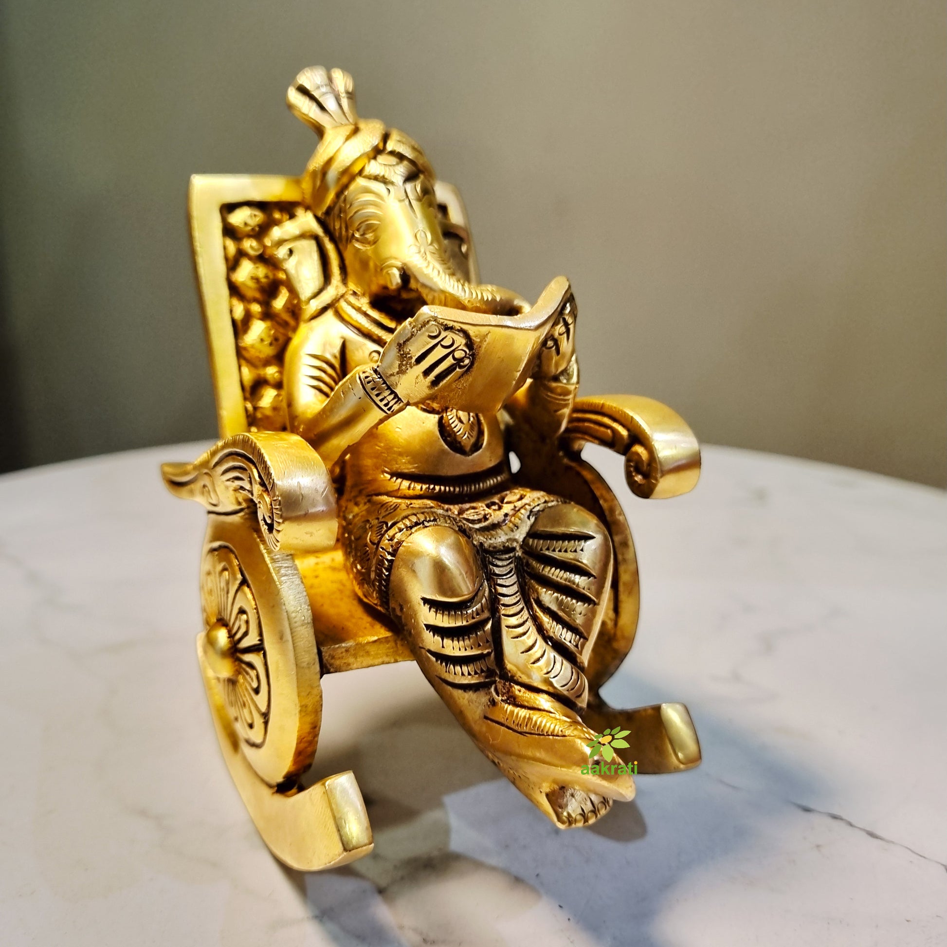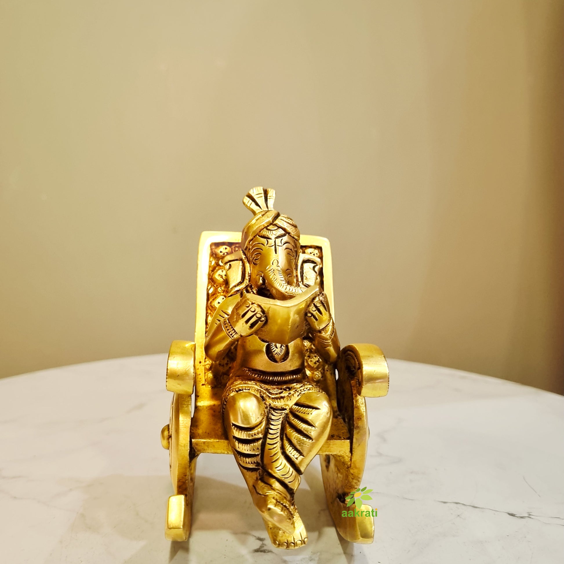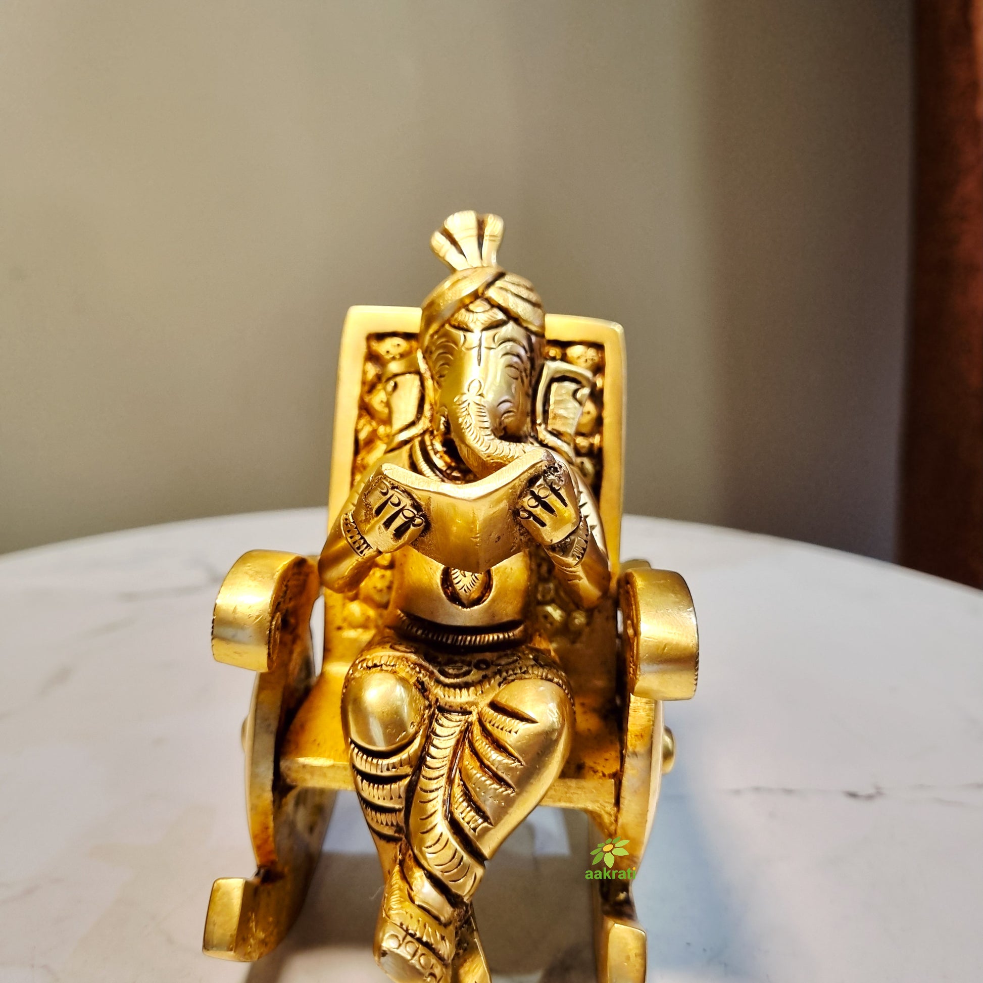 Brass Ganesh Statue | Sitting on chair for blessing & Prosperity | Brass Ganesha Murti|( Yellow, 4.5 inch)