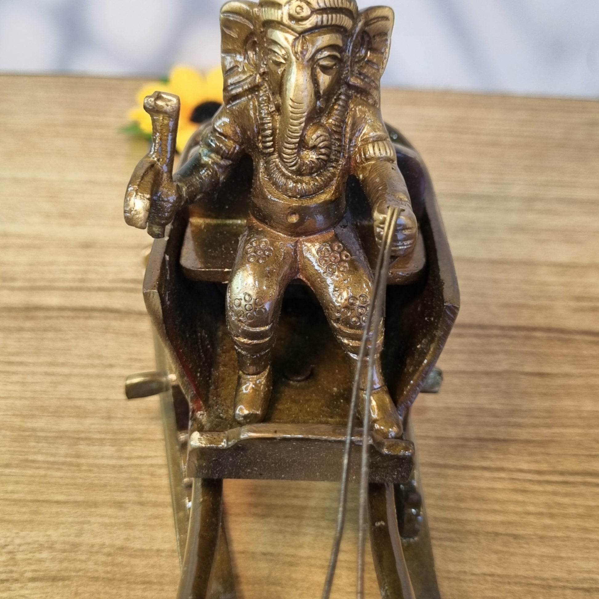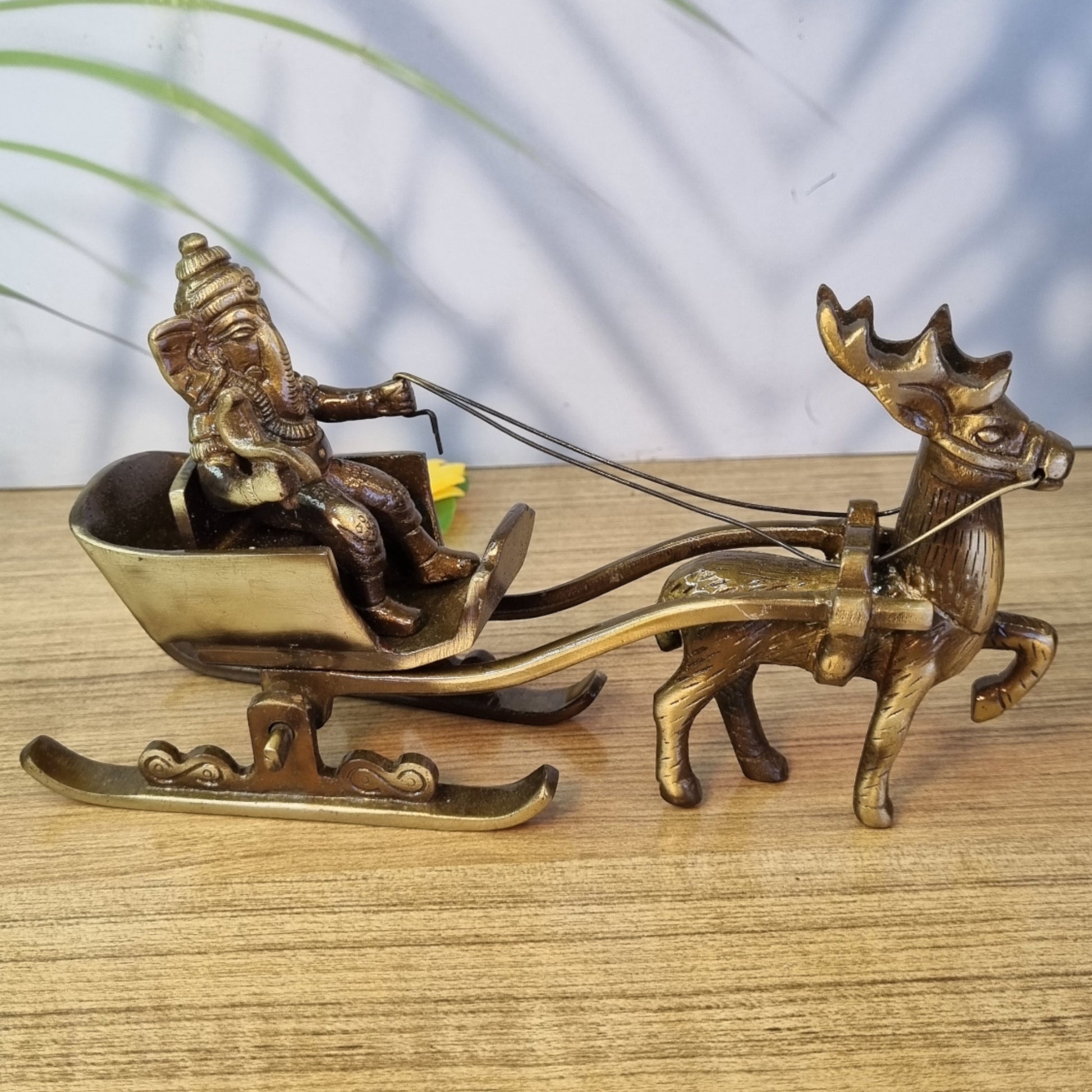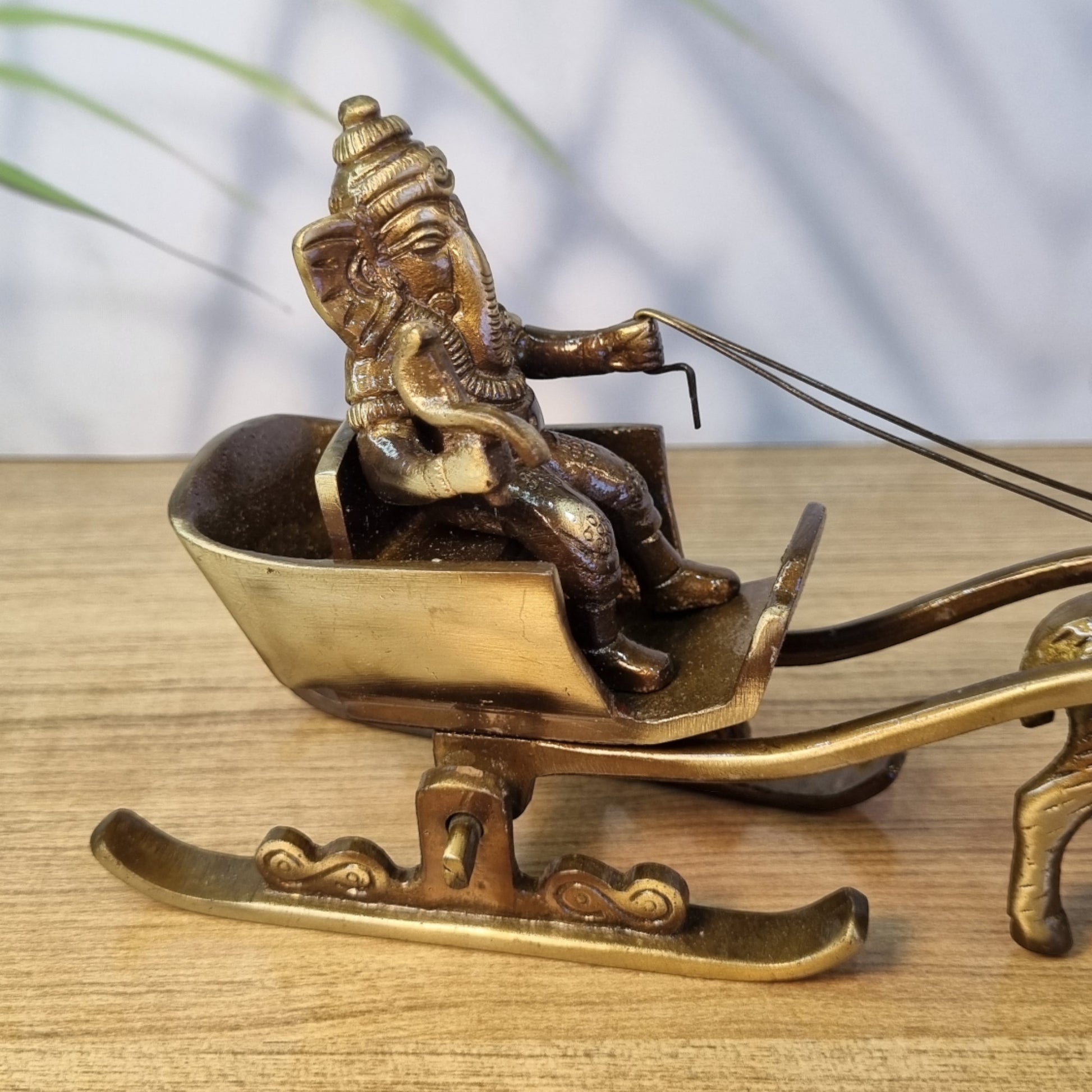 Brass Ganesha Sleigh Showpiece Statue | A Beautiful Decorative Piece for Traditional Home Decor | Handcrafted Decorative Brass Ganesha Statue ( Brown, 7.1 inch)