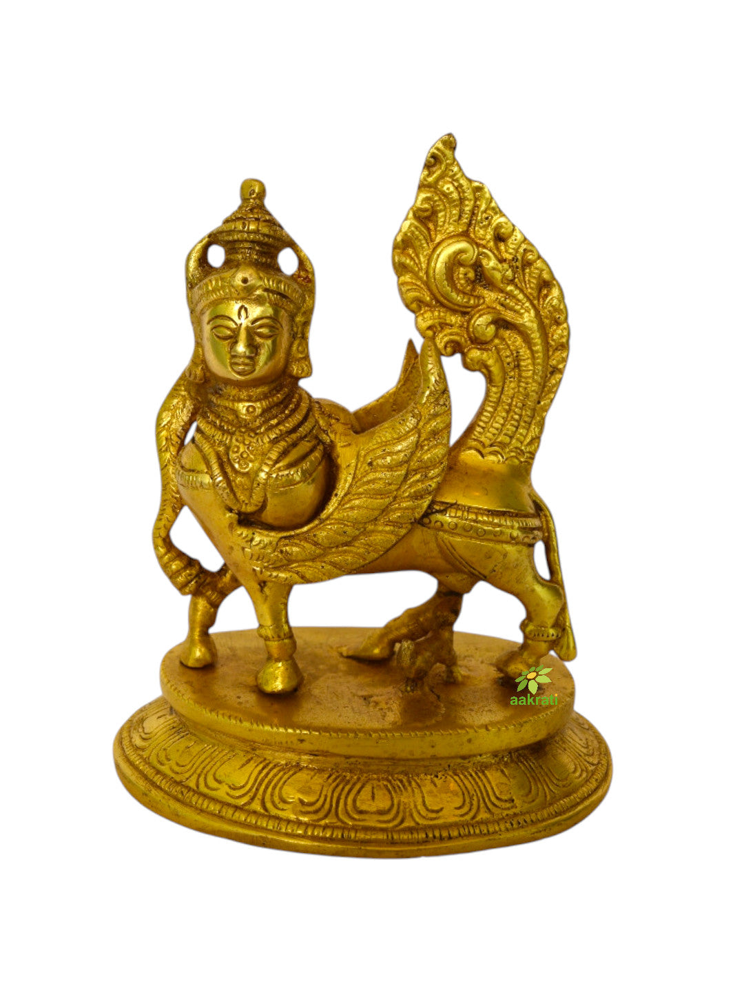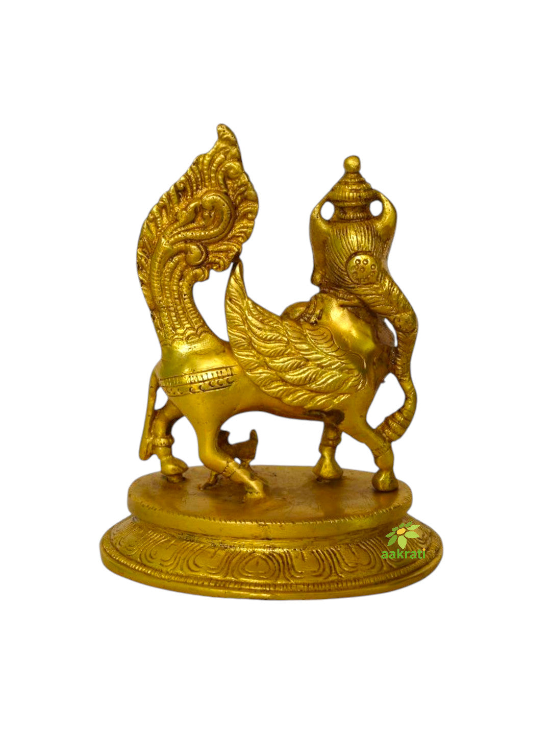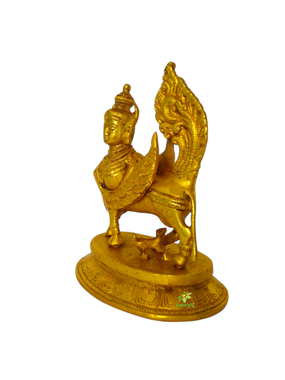 Brass Kamdhenu Cow Murti | Divine Symbol of Wealth and Harmony | Handmade Brass Religious Kamdhenu Statue ( Yellow, 7 inch)