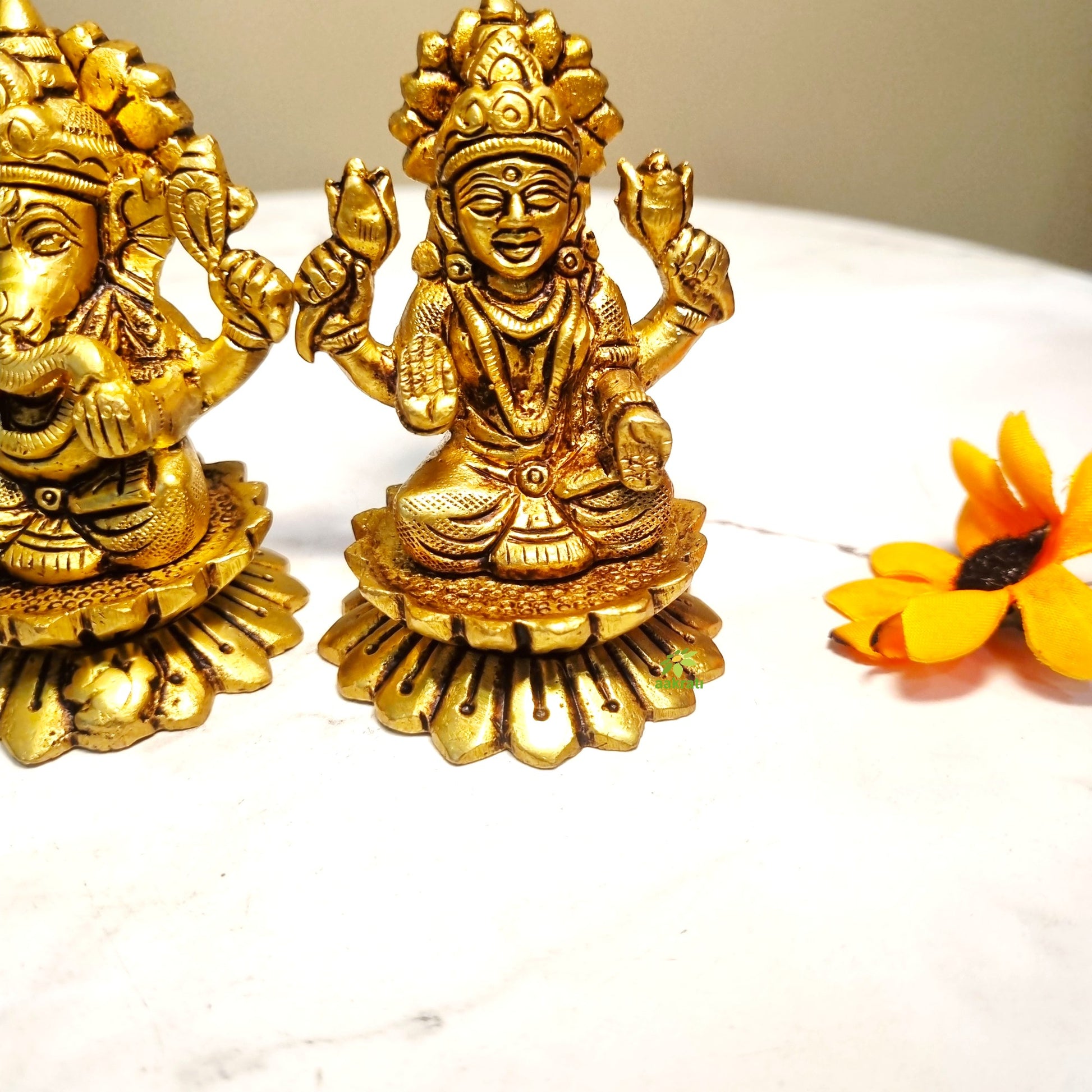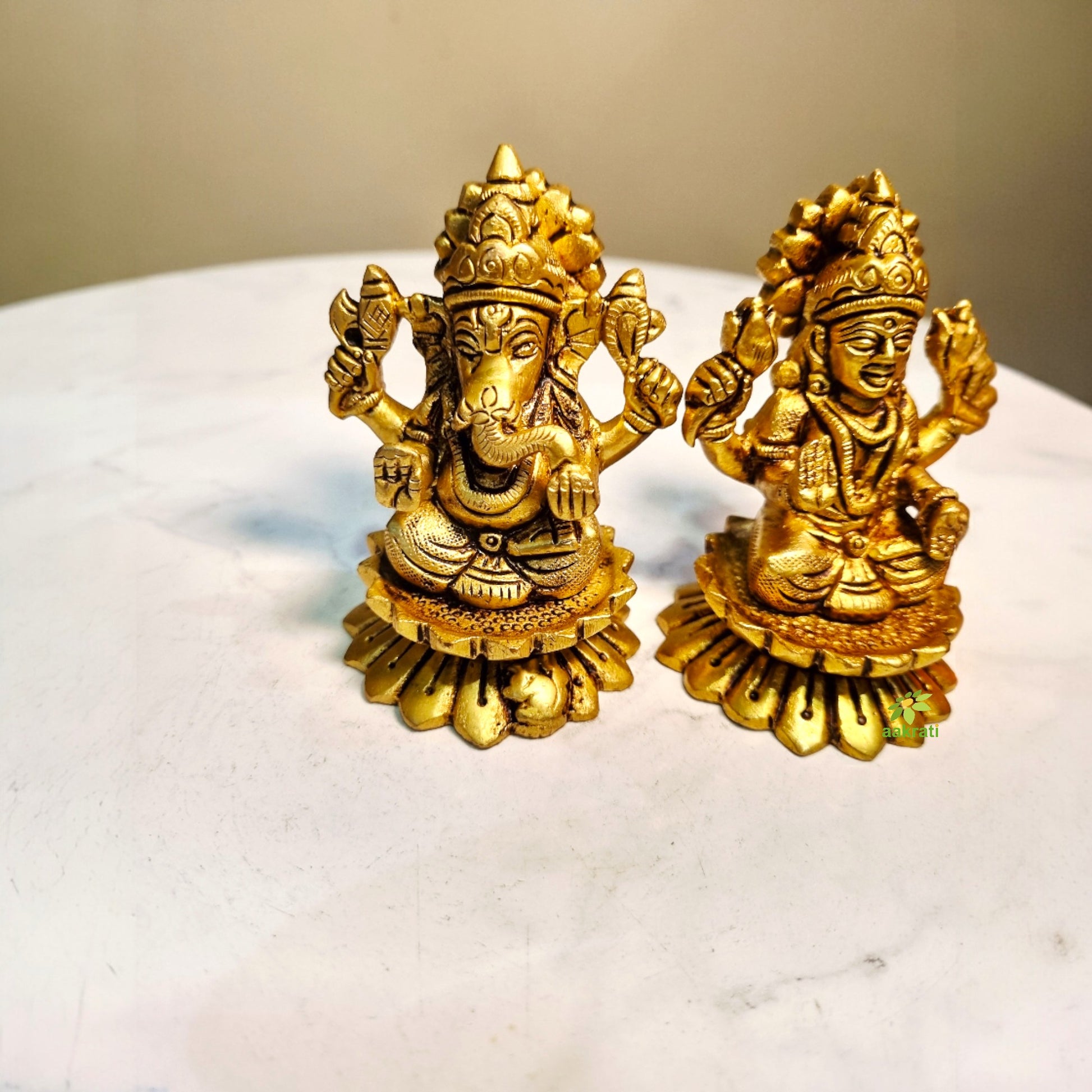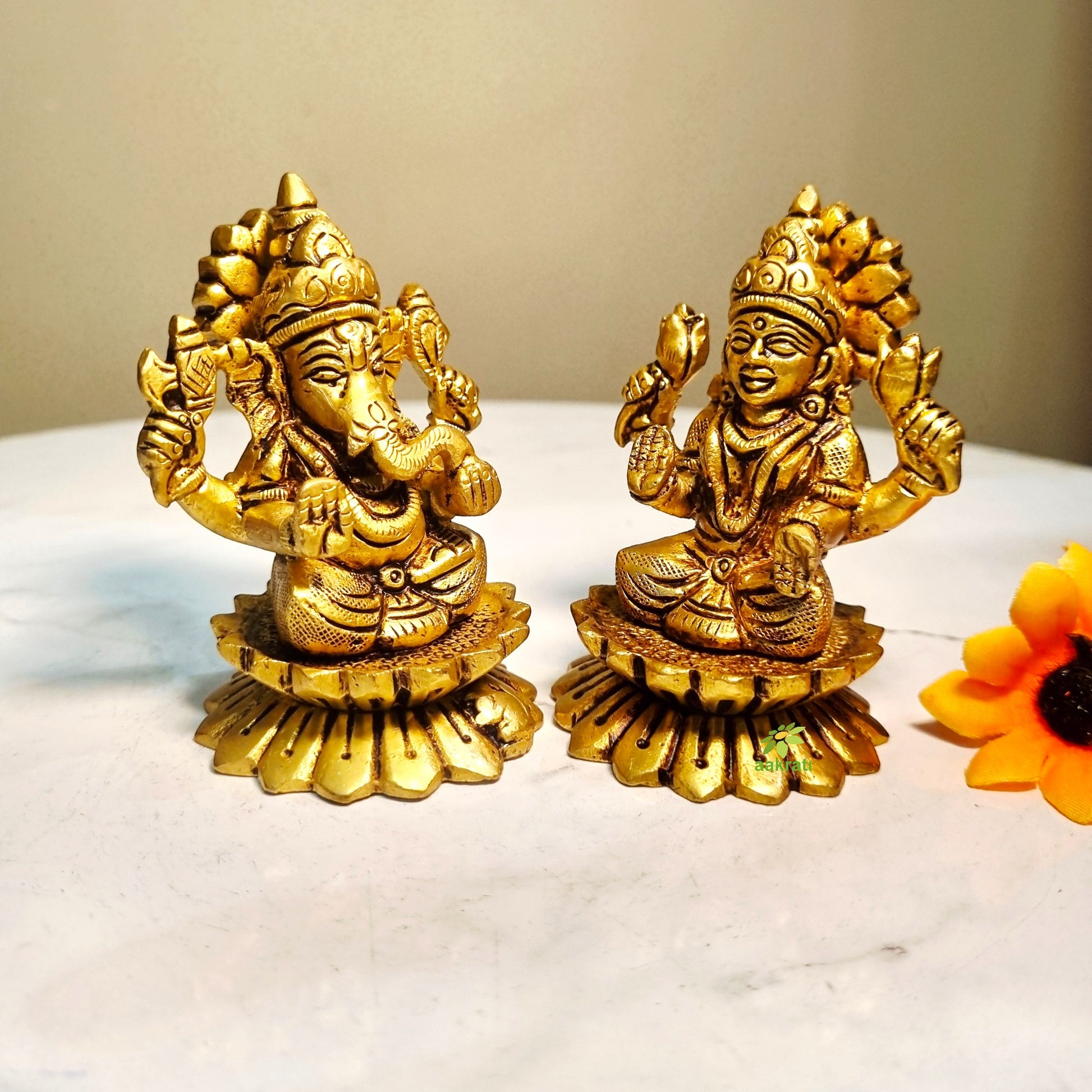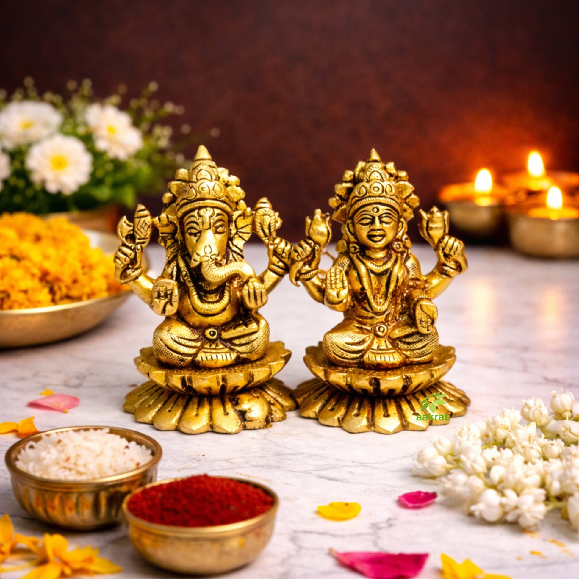 Brass Laxmi Ganesh Idol for Home Pooja | Sacred Idol for Daily Worship & Festivals | Brass Laxmi Ganesh
