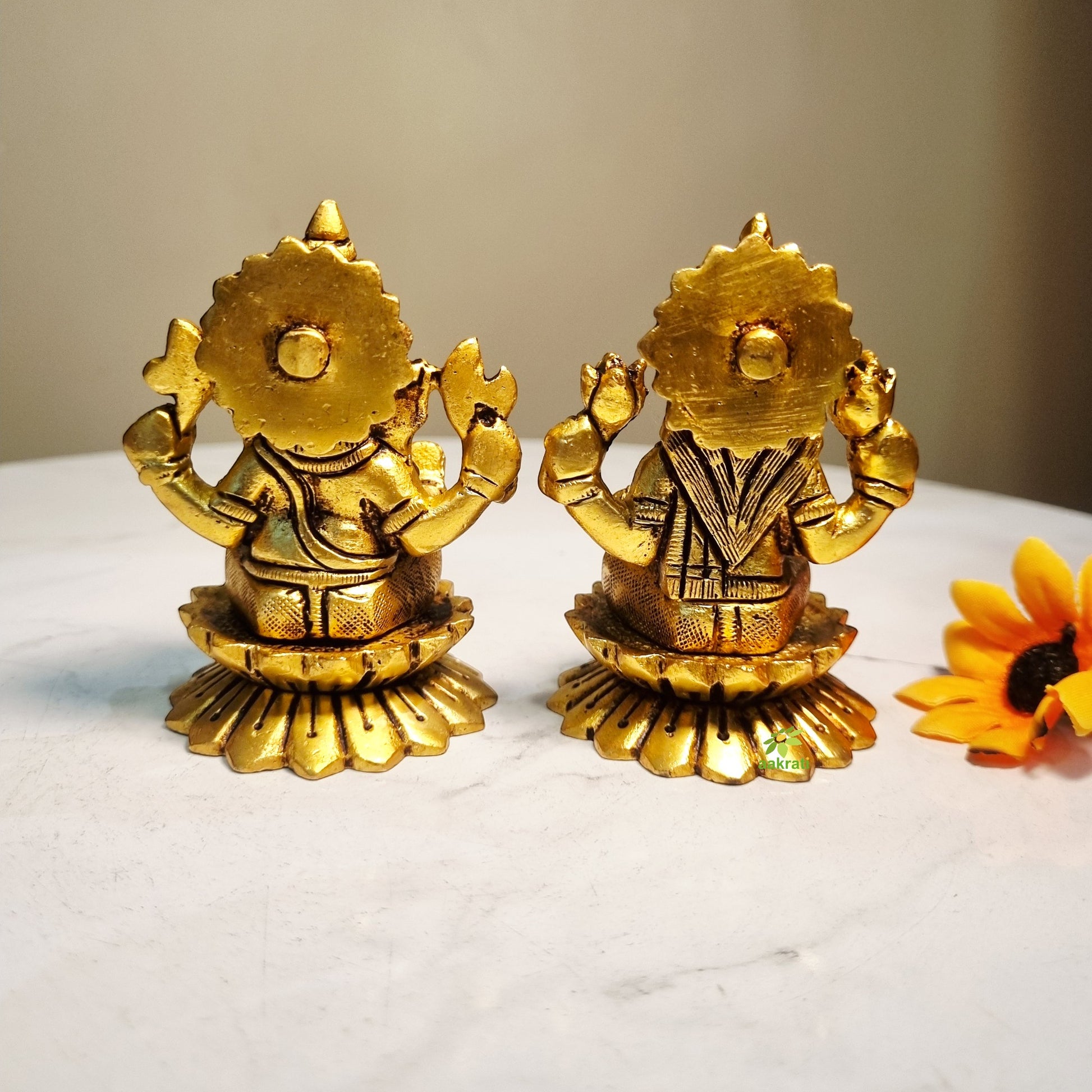 Brass Laxmi Ganesh Idol for Home Pooja | Sacred Idol for Daily Worship & Festivals | Brass Laxmi Ganesh (Yellow, 3 Inches)