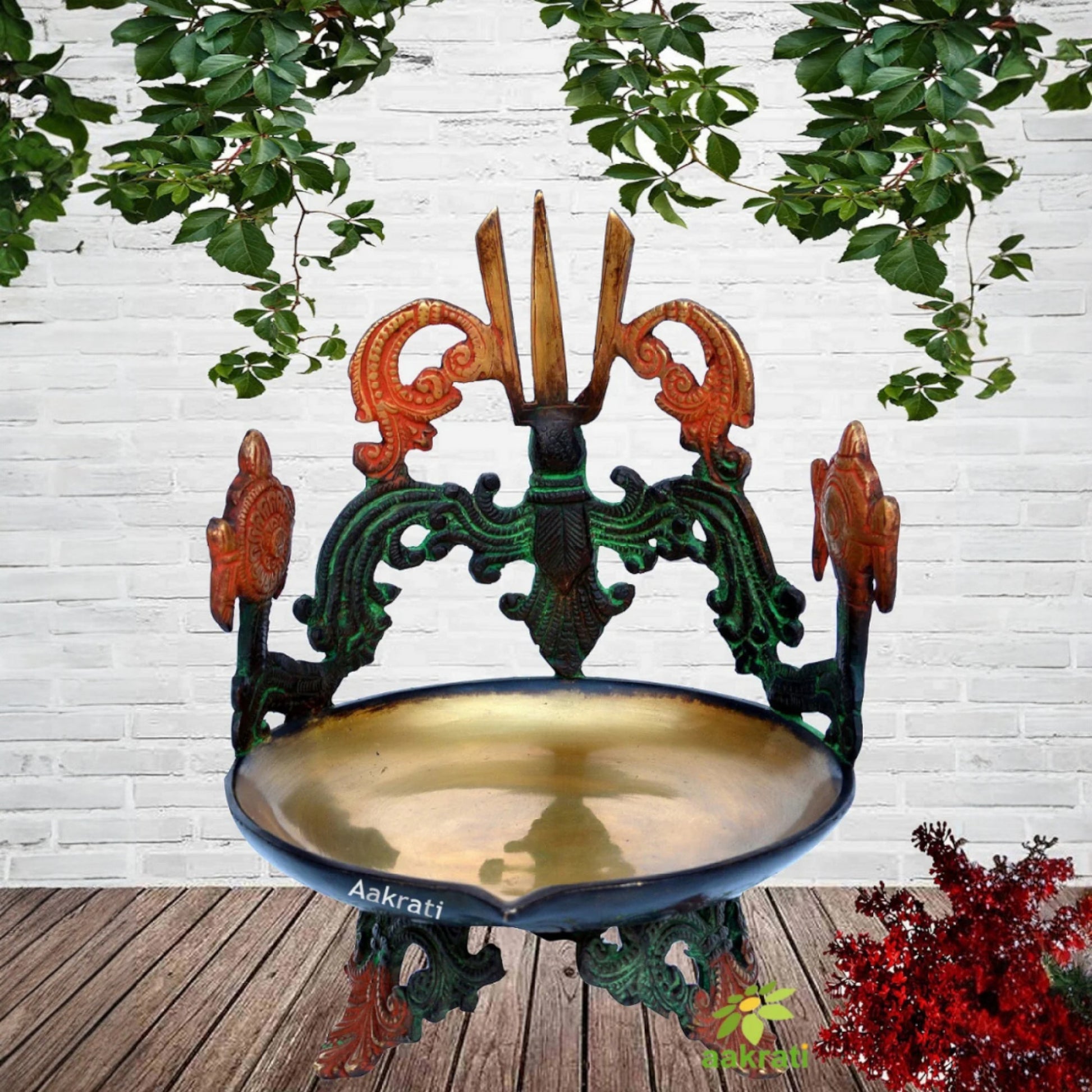Brass Lord Swami Vishnu Religious Symbols Shankha Chakra Design Diya Brass Aarti Diya/Deepak/Oil Lamp/Deepam for Home/Temple Decor