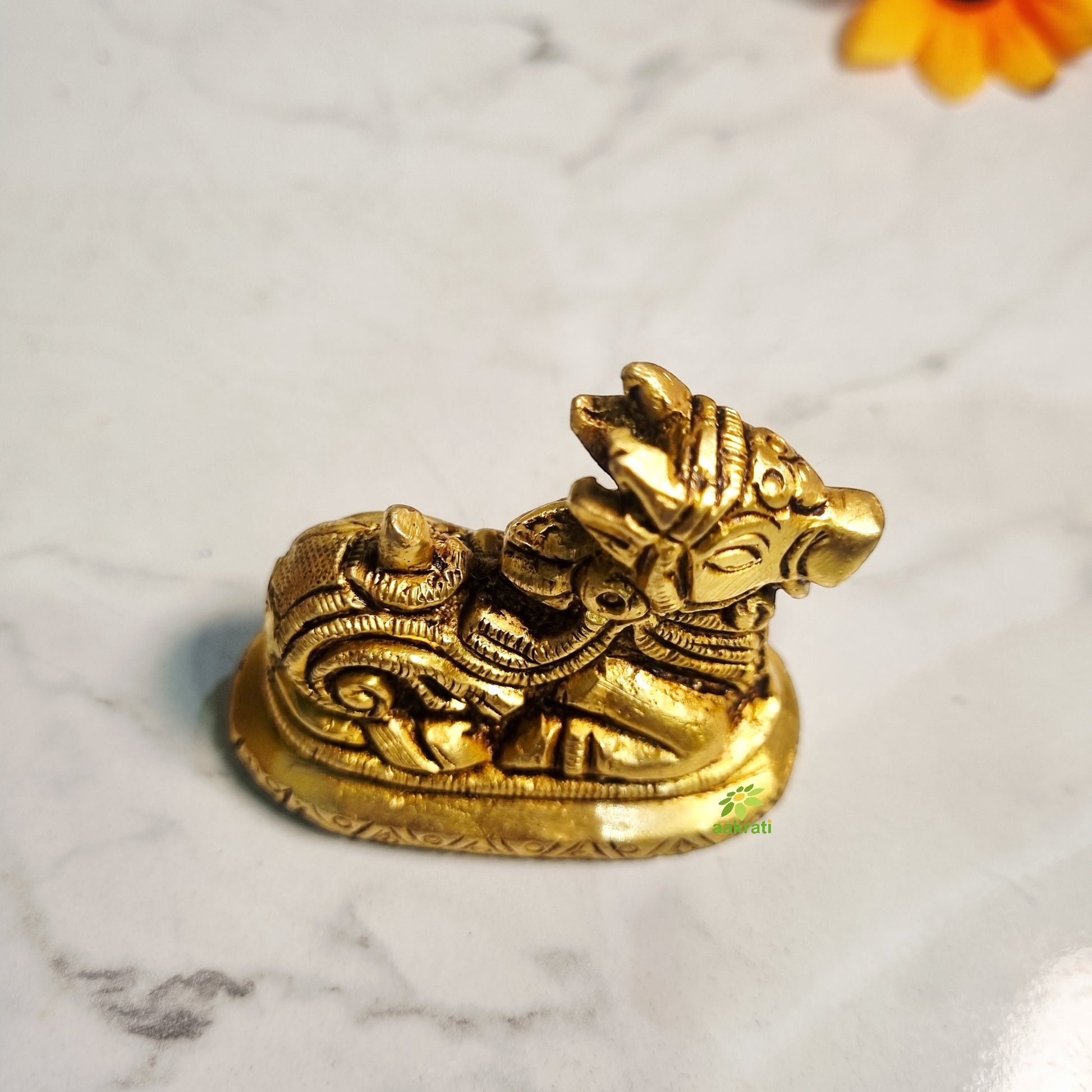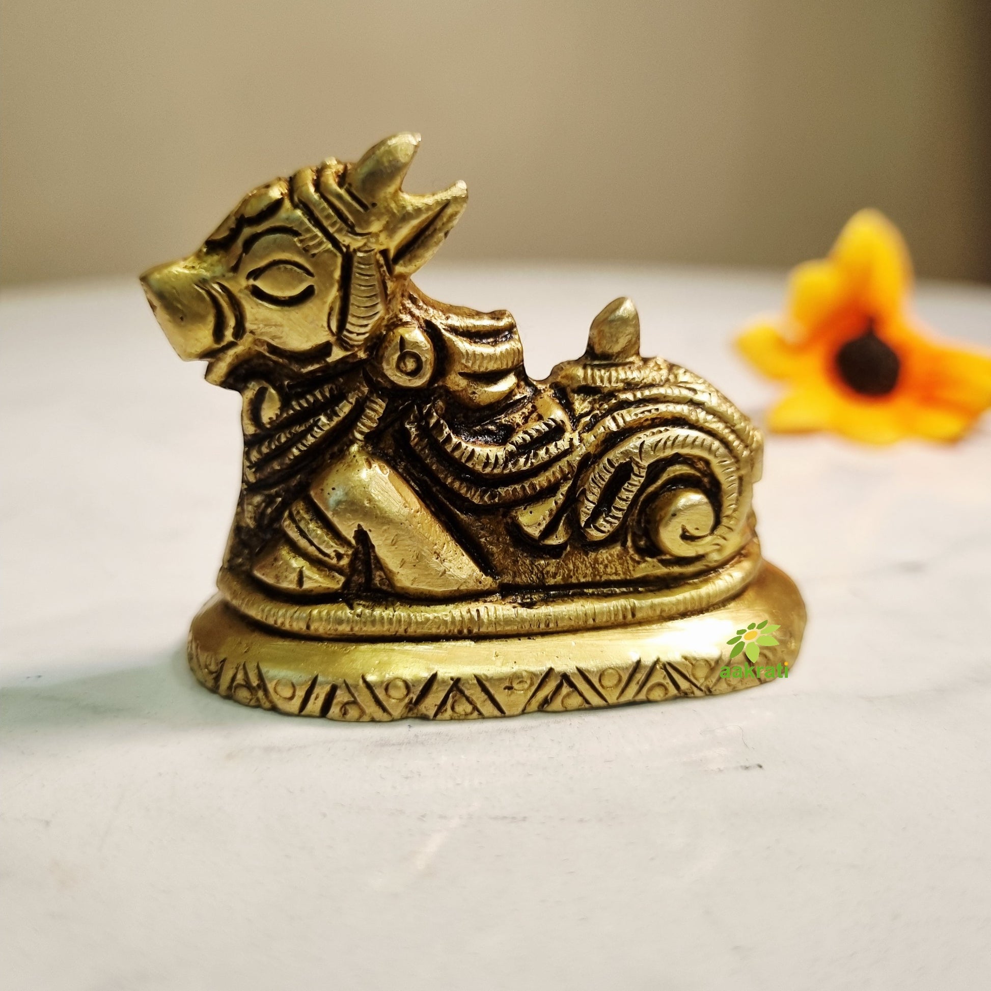 Brass Nandi Idol for Home Pooja | Traditional Brass Nandi Murti | Nandi Idol (Yellow, 1.5 Inches)