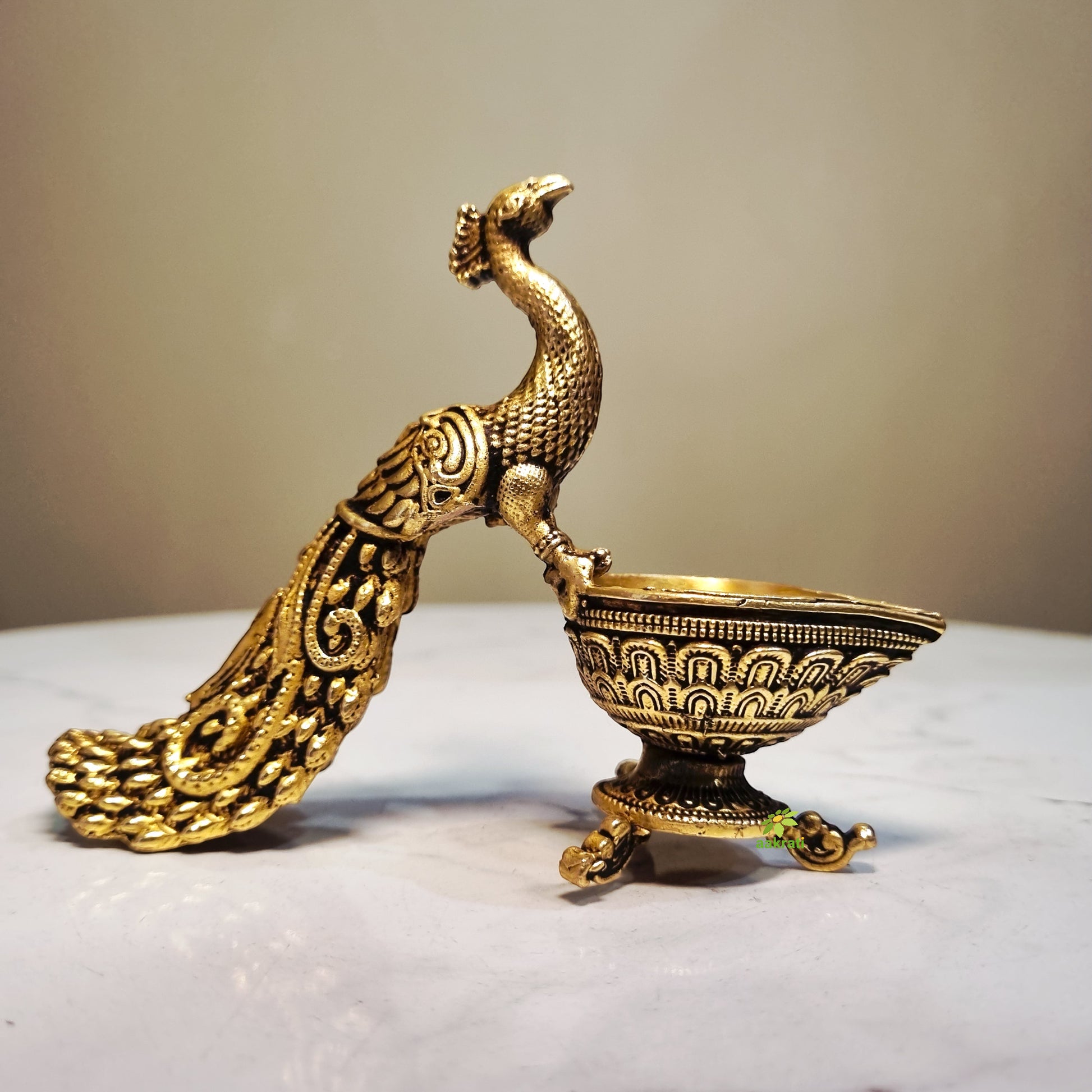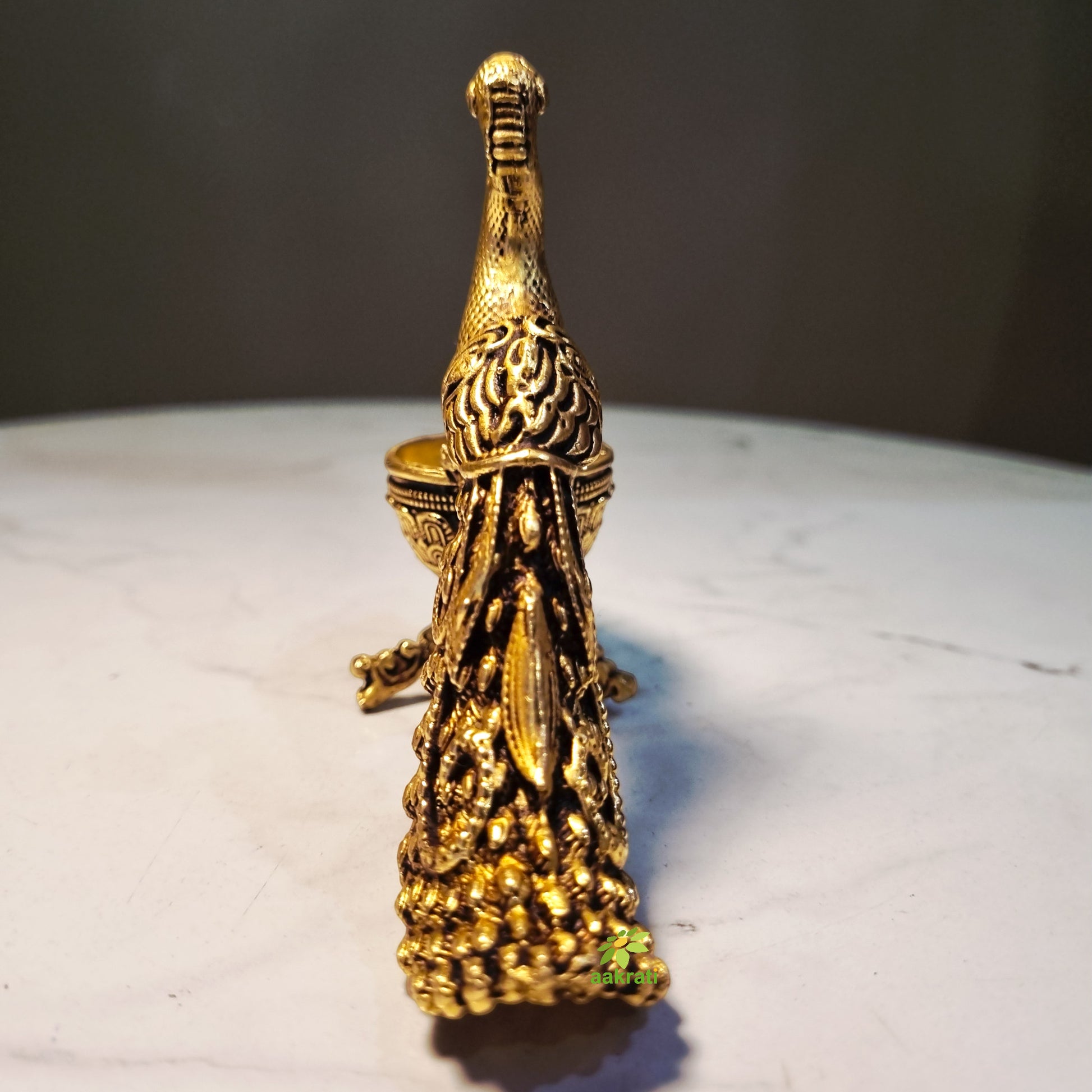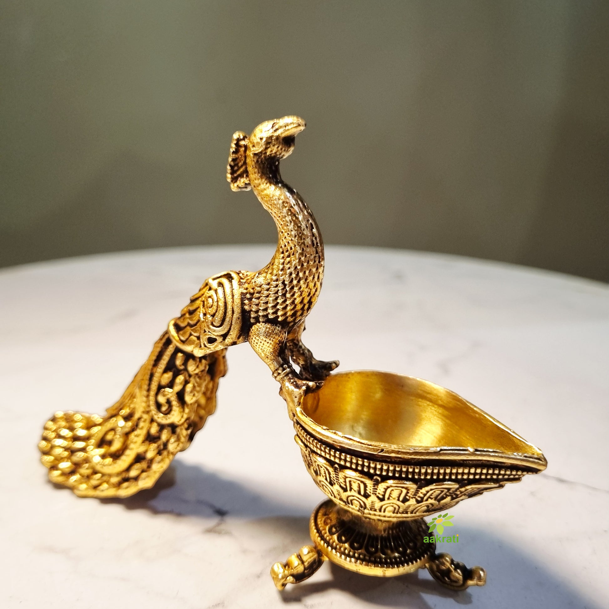Brass Peacock Diya | Decorative Oil Lamp for Festive Lighting & Gifting | Light Weight Brass Diya (Yellow, 3 Inches)