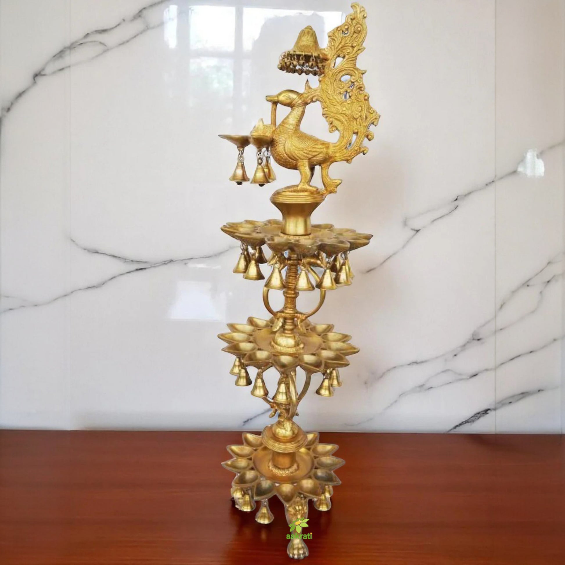 Brass Peacock Oil Lamp Stand | Luxurious Festival Decor for Home and Pooja Room | Brass Peacock Oil Lamp ( Yellow, 48 inch)