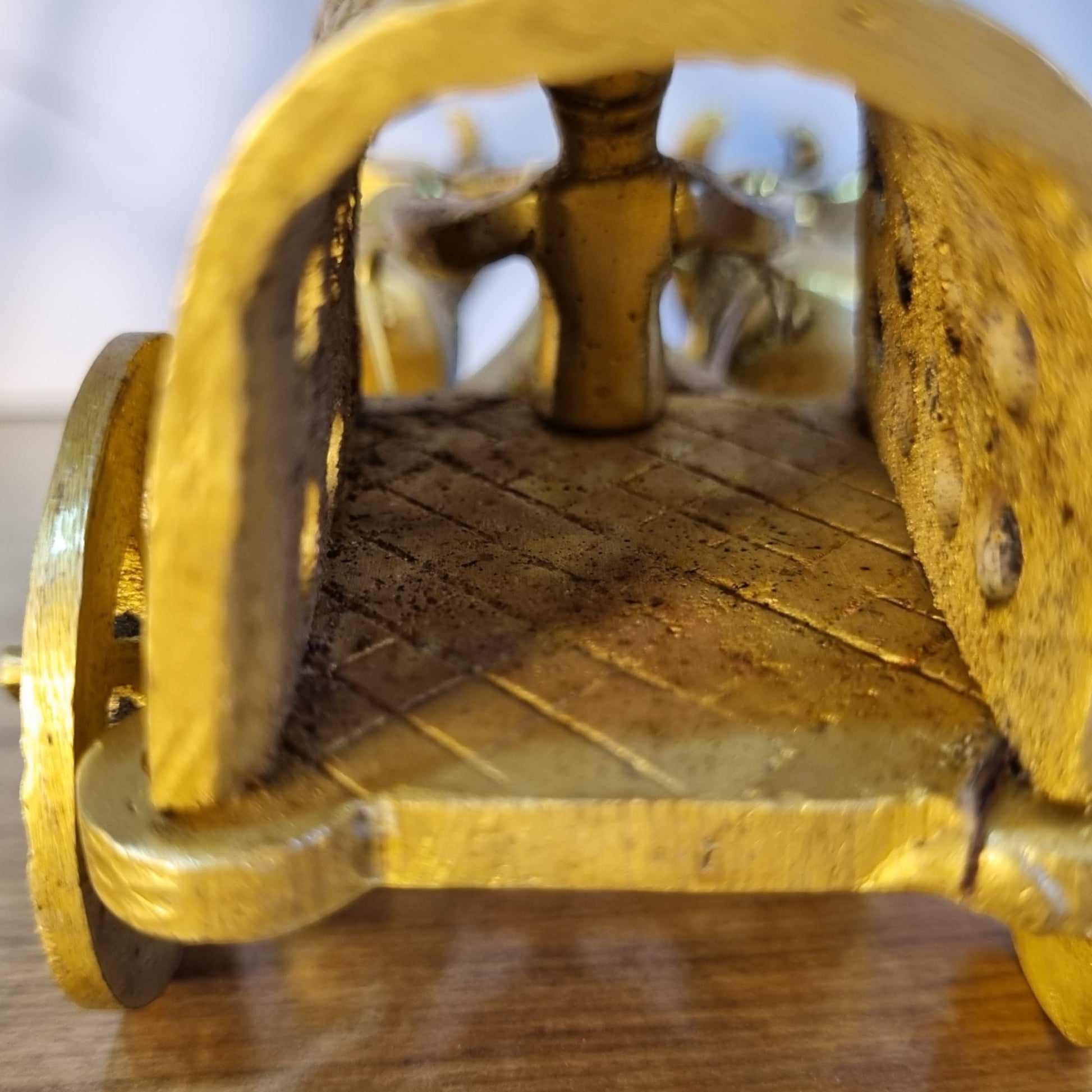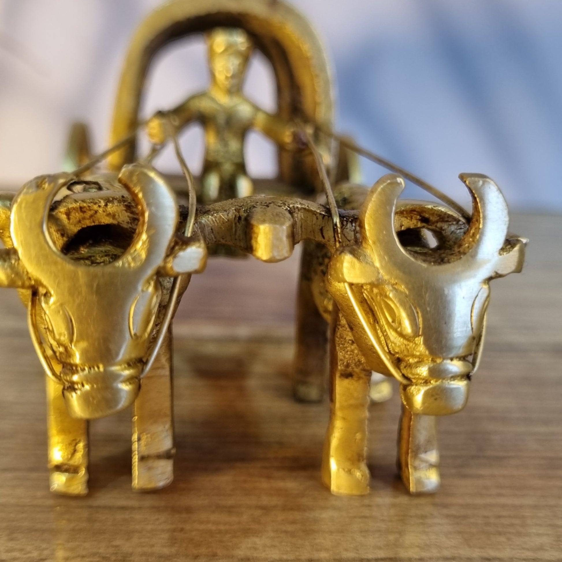 Brass Bull Cart Showpiece | Handcrafted Bullock Cart Figurine for Home Décor | Handmade Brass Bull Cart ( Yellow, 2.5 inch)