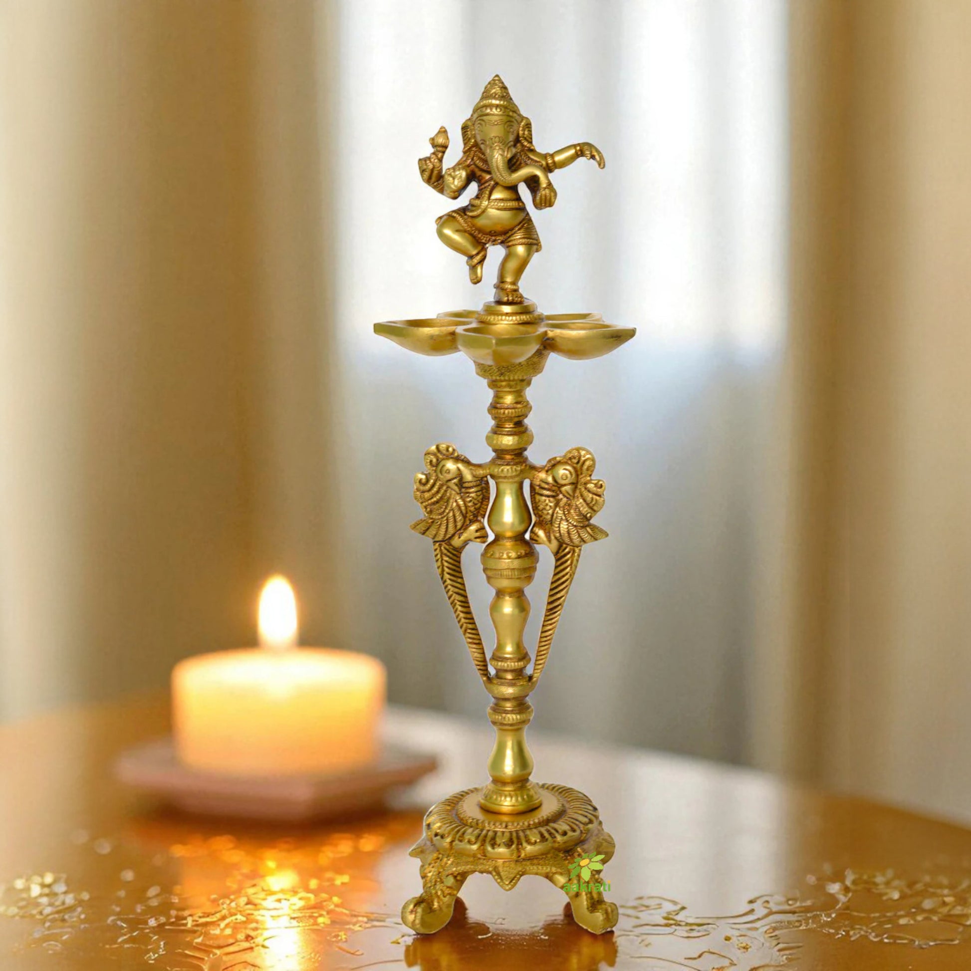 Decorative Oil Lamp with Dancing Ganesha on top Table Decor