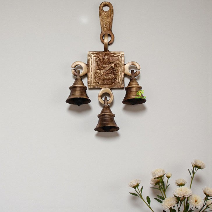 Divine Brass Wall Hanging Wind Chime | Bring Peace & Positivity | Handmade Brass Goddess Saraswati Wind Chime ( Yellow, 6.8 inch)