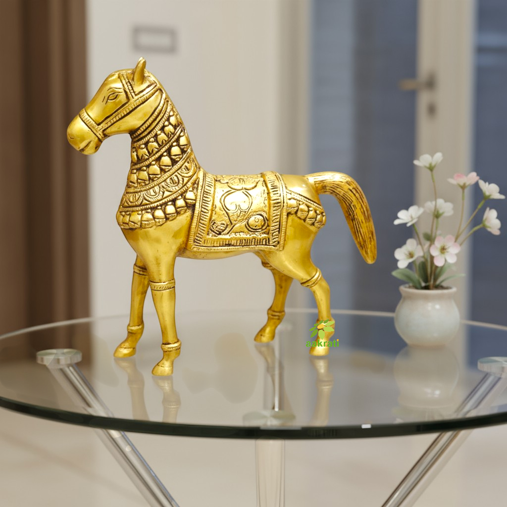 "Pure Brass Horse Statue Table Decor | "Premium Brass Horse Figurine | Table decor (Yellow 9 inch)