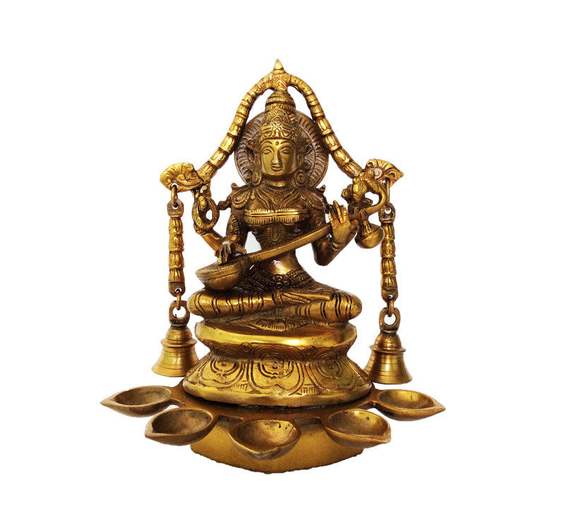 Saraswati Diya in Brass | Spiritual Luxury for Your Home | Goddess Saraswati Brass Oil Lamp ( Brown, 9 inch)