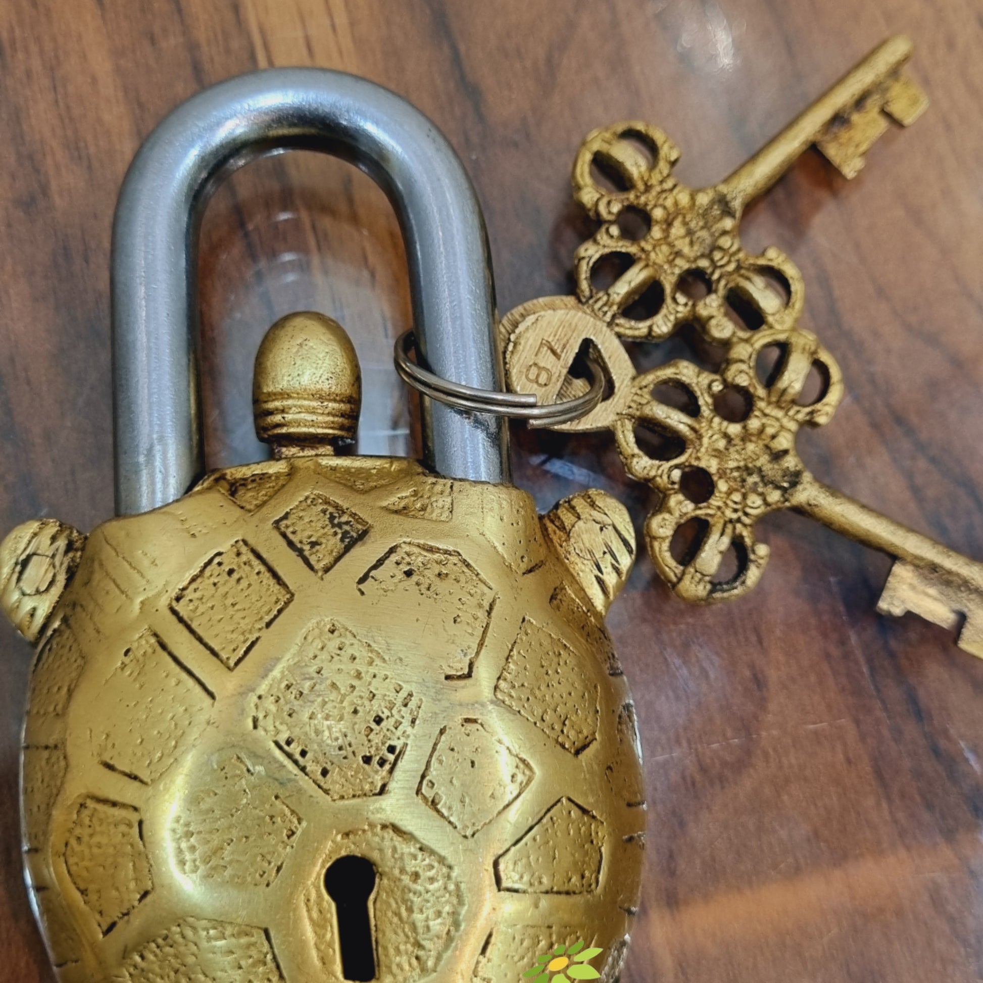 Tortoise Shape Brass Padlocks For Home Safety | Perfect for Gifting & Home Décor | Exquisite Brass Door Padlock ( Yellow, 5 inch)