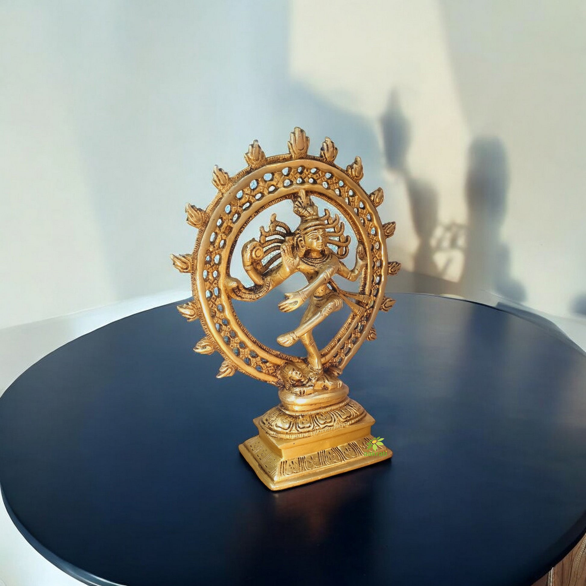 Traditional Brass Nataraj Statue | Perfect for Pujas & Home Decor | Divine Brass Nataraj Showpiece ( Yellow, 9.5 inch)